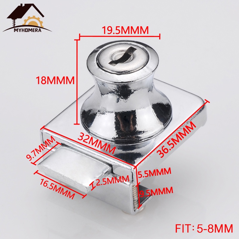 Single Double Glass Lock Glass Display Cabinets Showcase Cabinet Door Zinc Alloy Sliding Cylinder Glass Push Door Lock For Glass 5-8mm