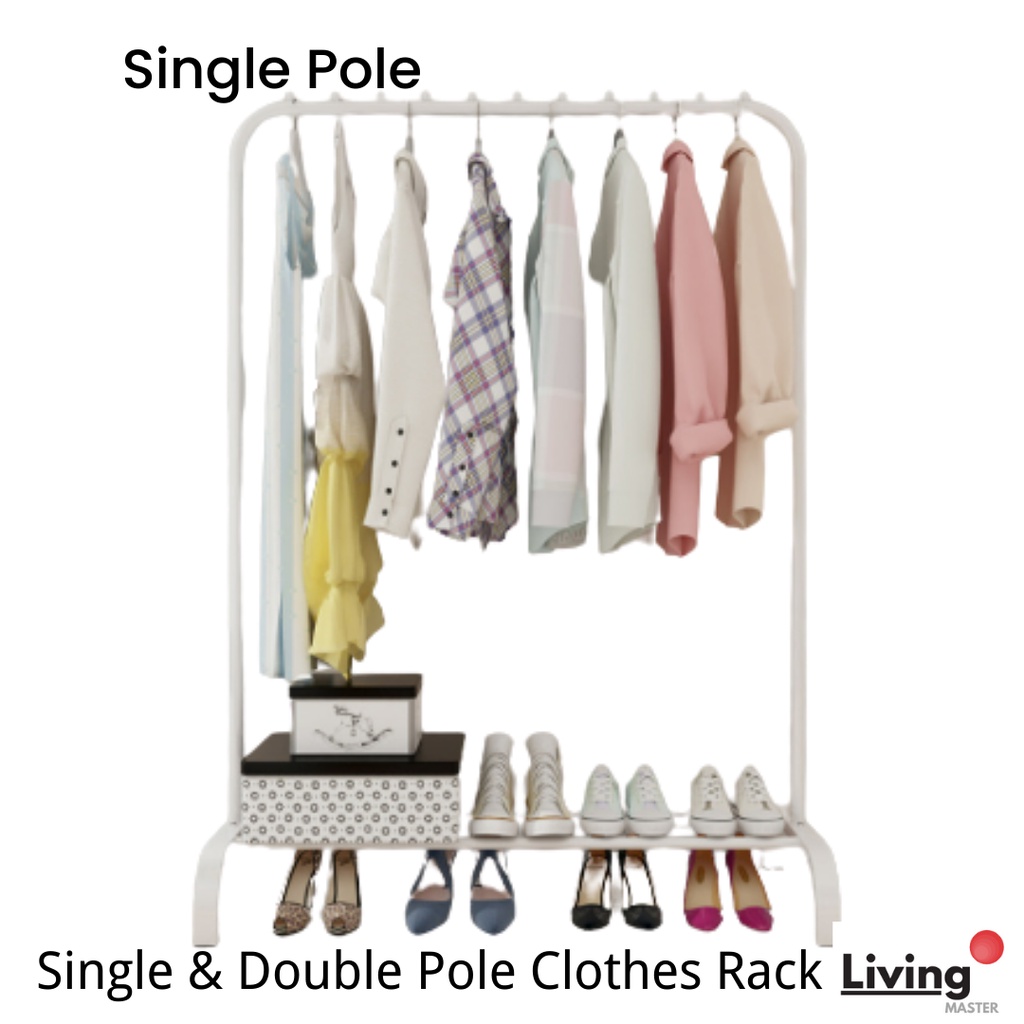 Single & Double Pole Clothes Rack Strong Powder Coated Drying Rack Floor-standing Clothes Hanger Living Room Ready Stock