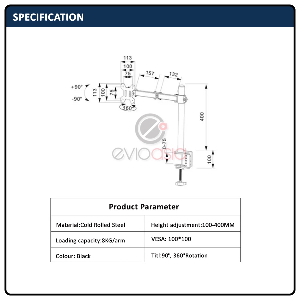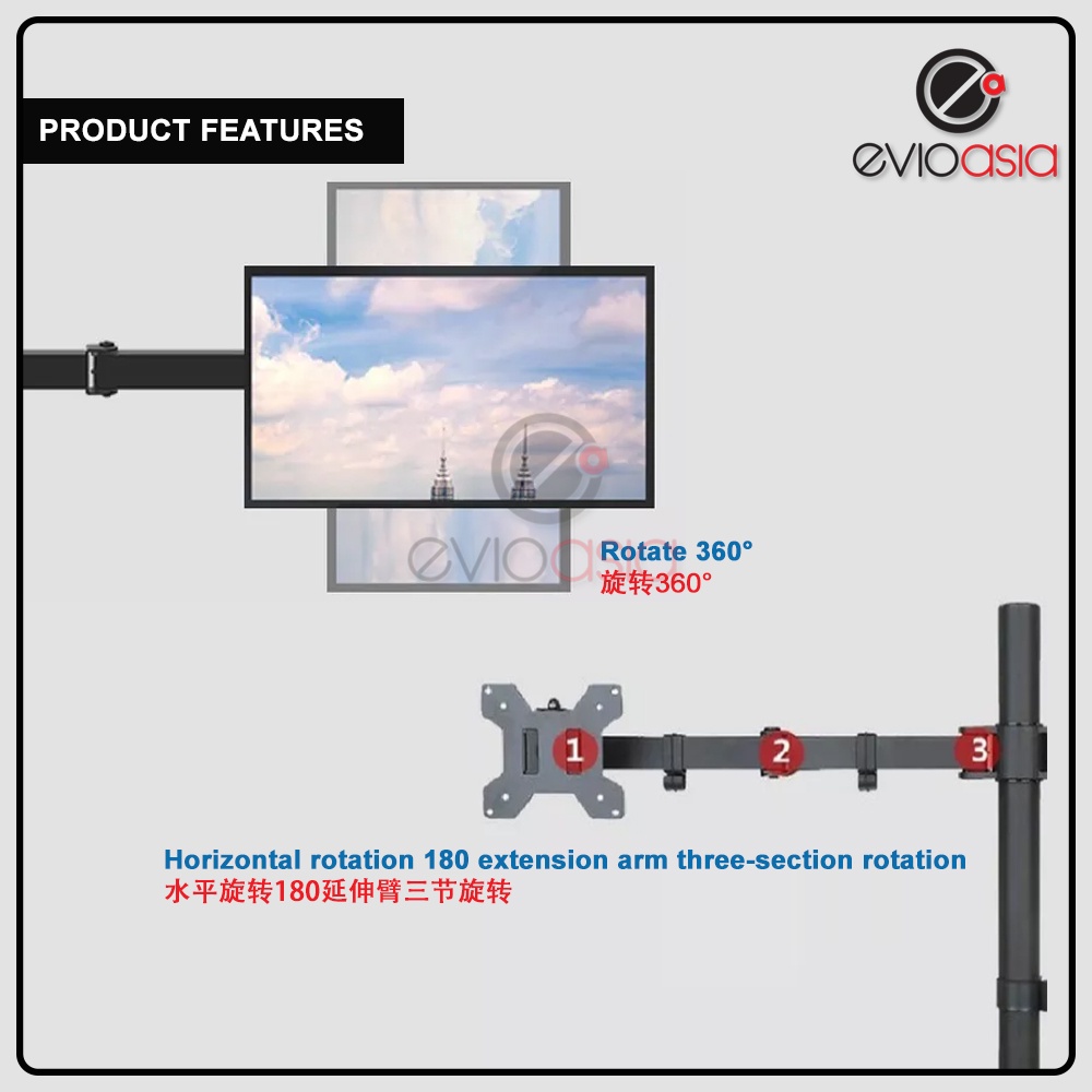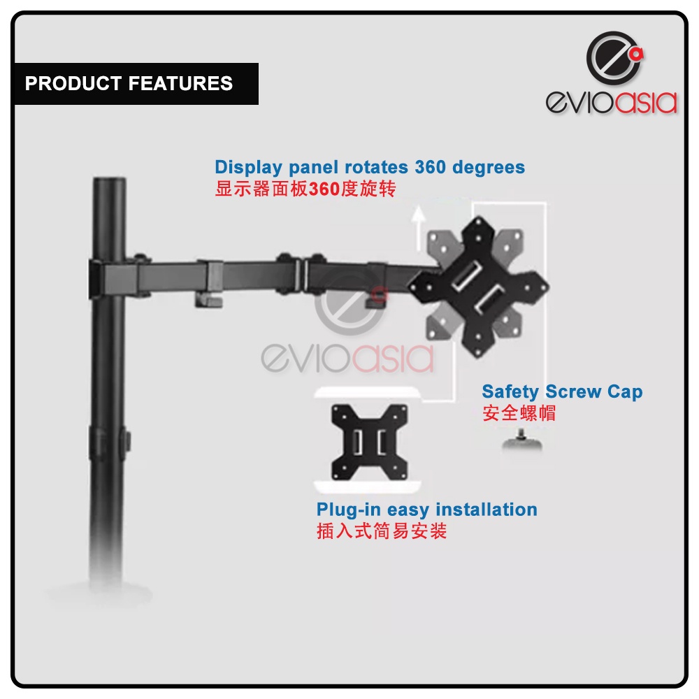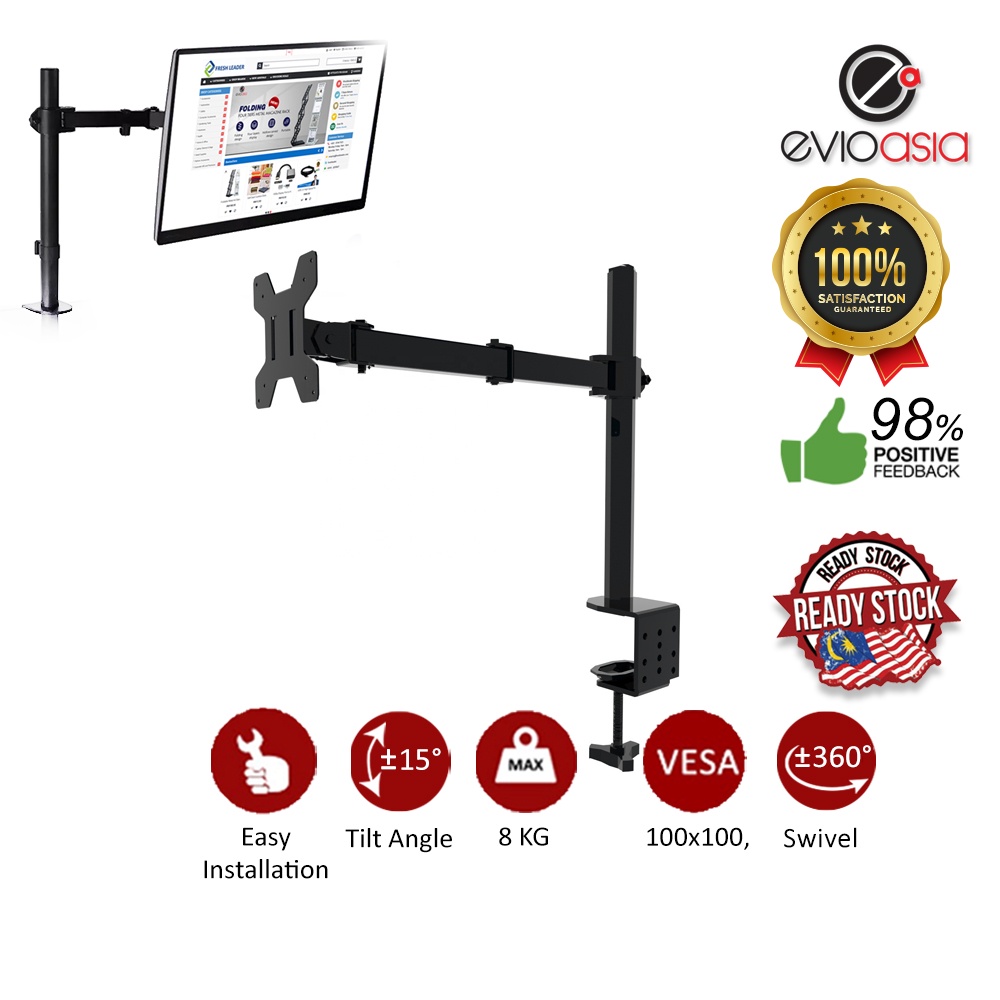 Single Monitor Arm Fully Adjustable Desk Mount Stand For 1 Screen up to 17"-30" inch