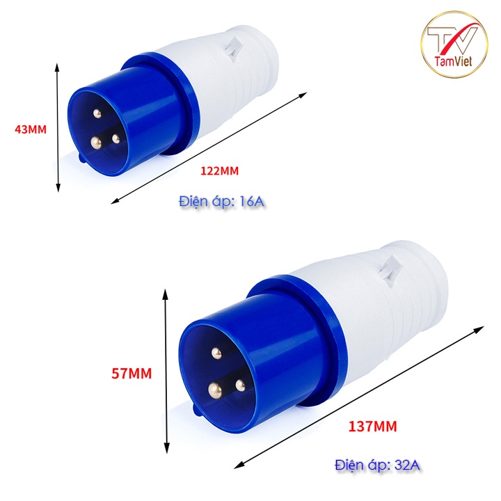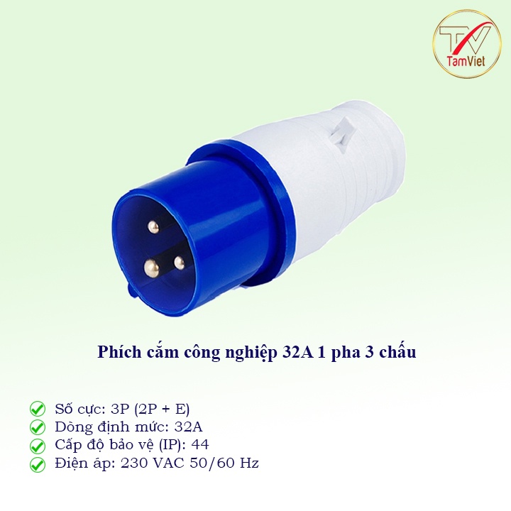 Single phase 3 pin industrial plug 3P (2P+E) 16A, 32A voltage 220V