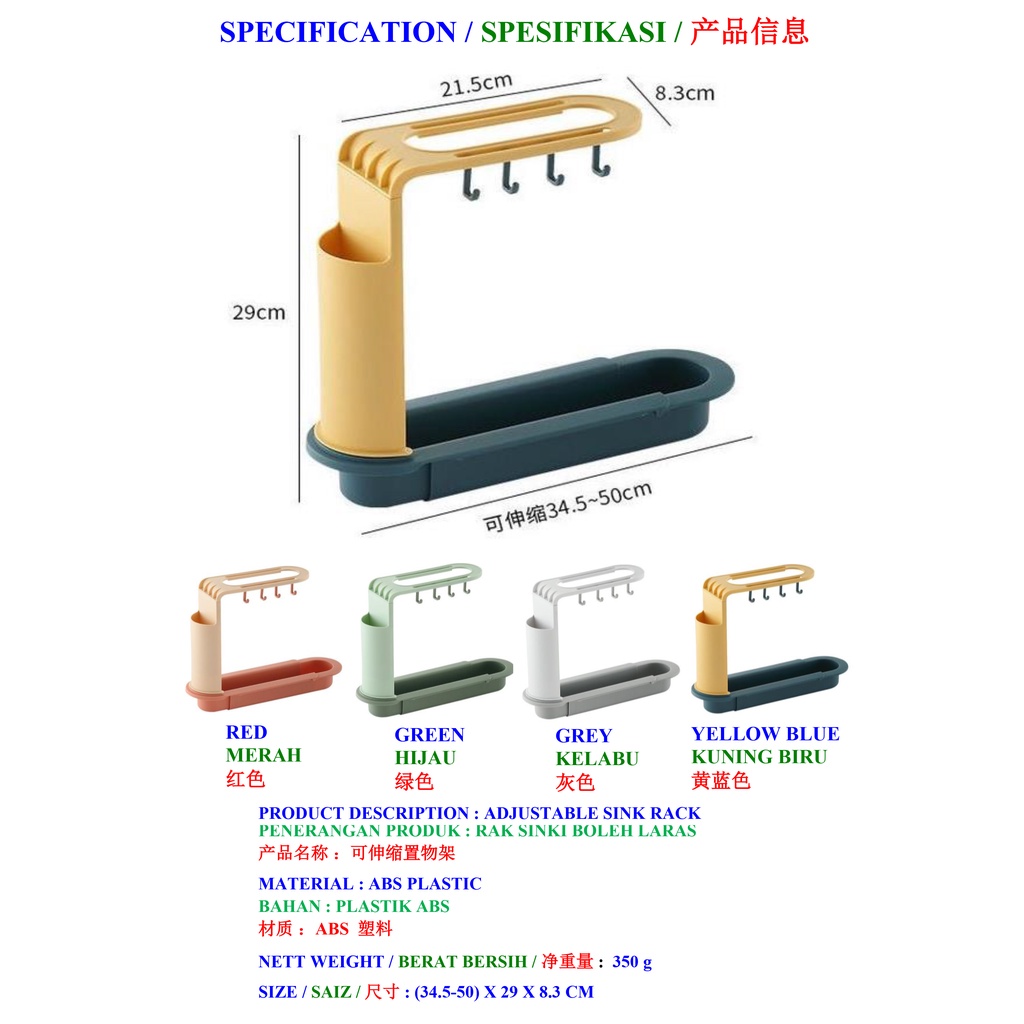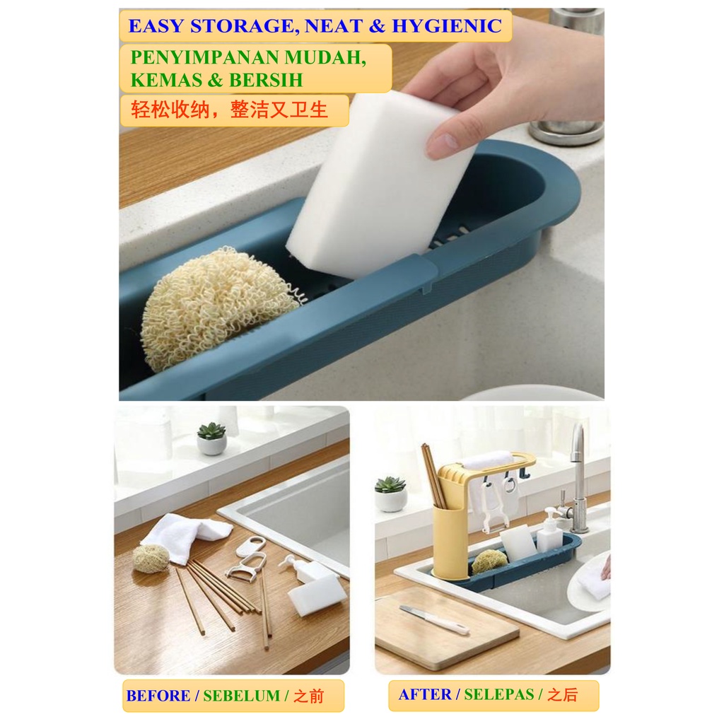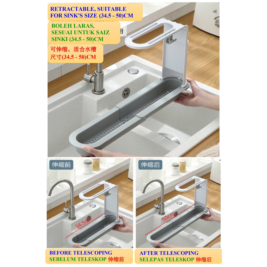 Sink rack, adjustable basin drainer, telescopic sink rack, basin rack, dish rack, rak sinki, rak besen, rak sinki