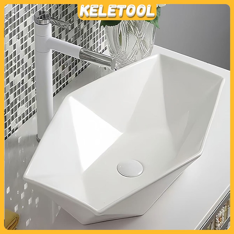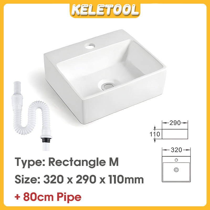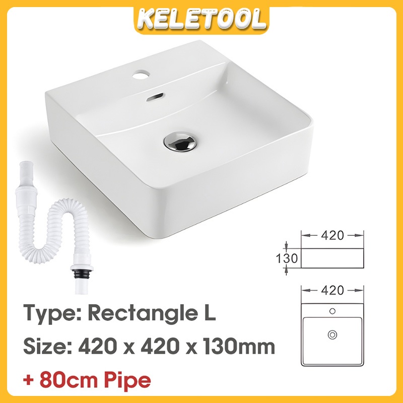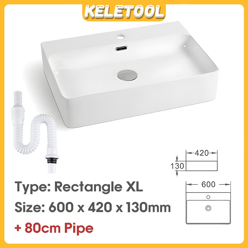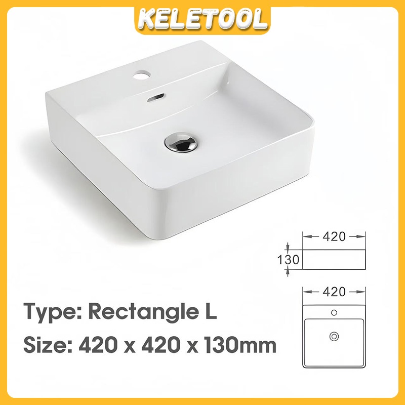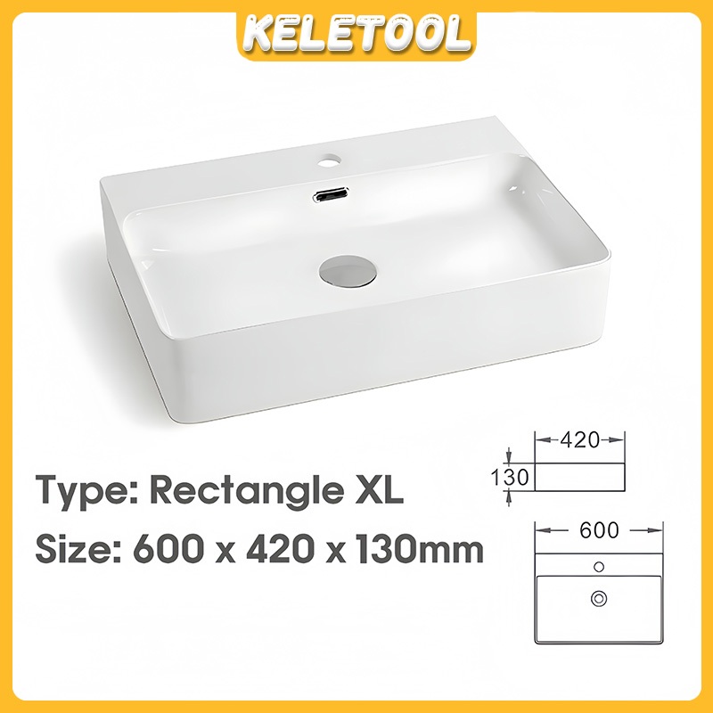 Sinki Bilik Premium Rectangle White Ceramic Bathroom Sink Countertop Wash Basin Wall Hung Toilet Basin Bowl Modern Design Durable Easy Clean