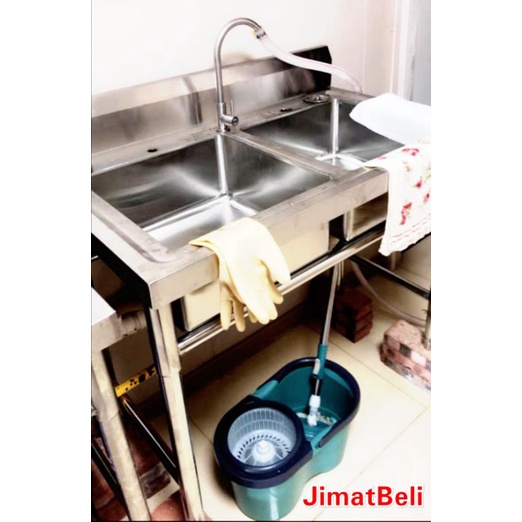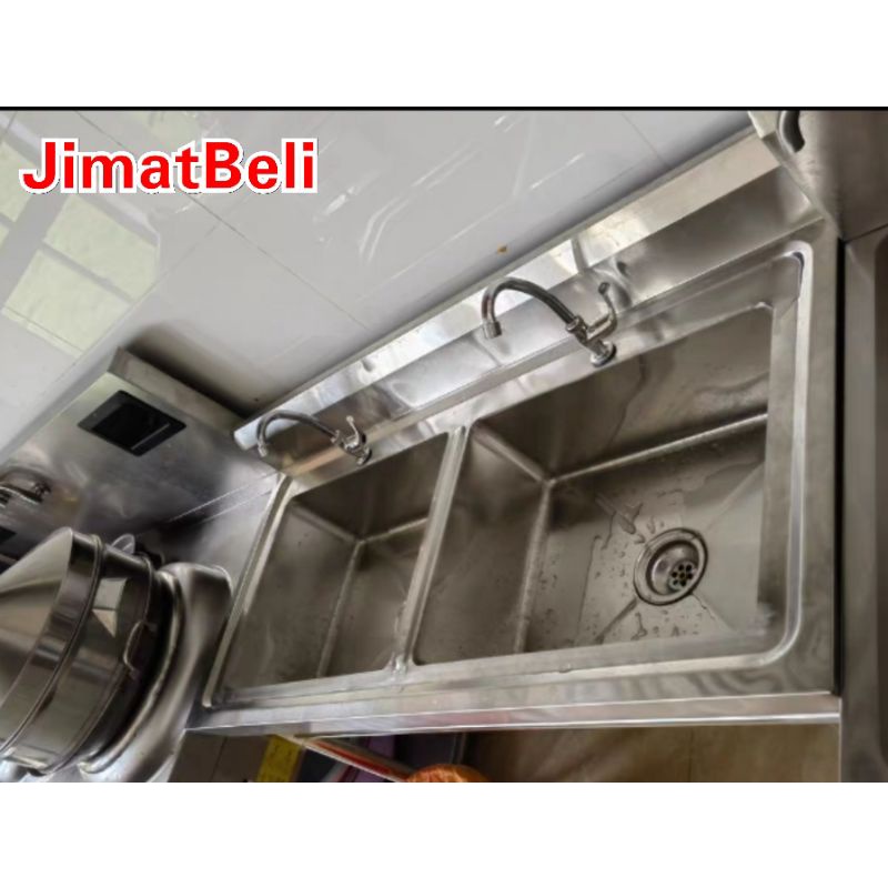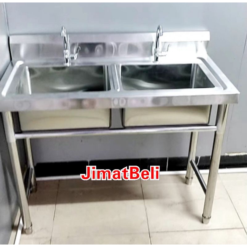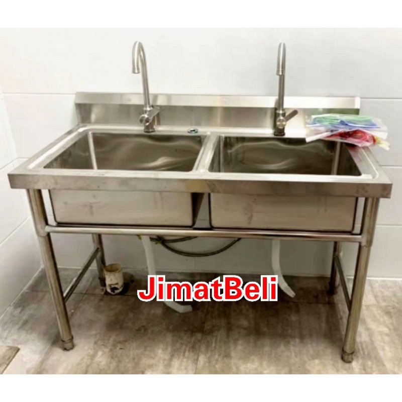 Sinki Kembar Stainless Steel Double Bowl Sink with Stand Sinki Berkaki L110 x W60 x H80cm Heavy Duty