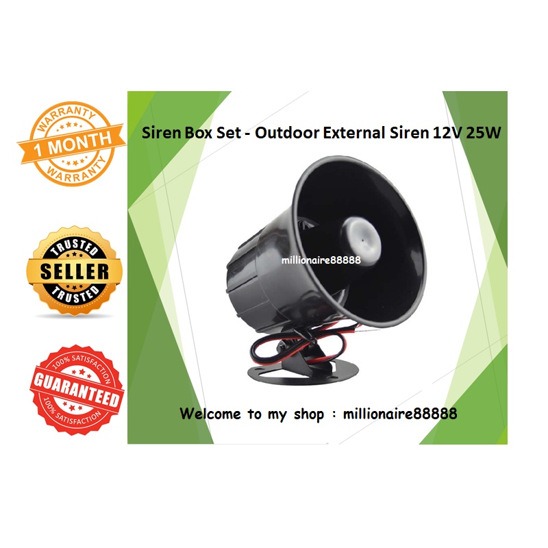Siren Box Set c/w Outdoor Siren Box - Outdoor External Siren - Indoor Internal Siren - Red Strobe Light - Tamper Switch