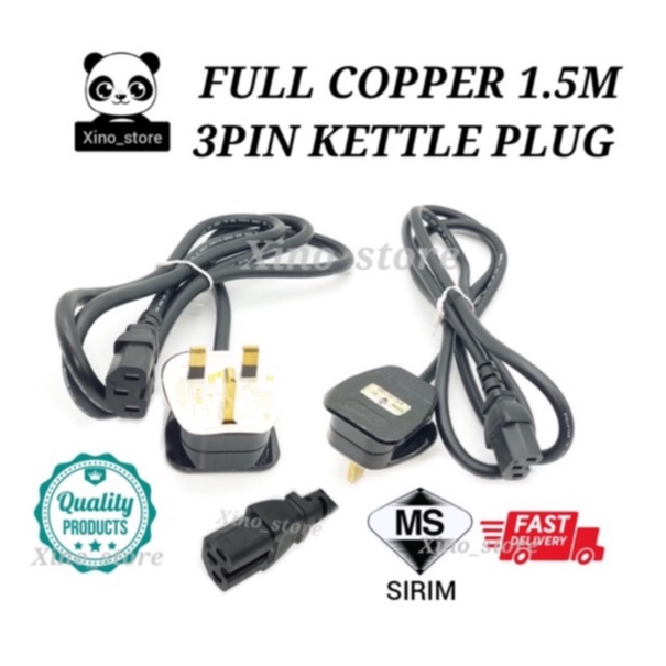 Sirim High Quality Full Copper Heavy Duty 3pin Kettle Plug Cord Set 1.5Meter 250V 13A Kettle Power Supply Cable
