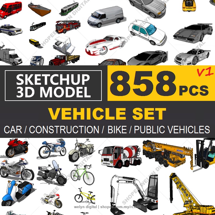 SketchUp | 3D Model Car / Vehicles / Transportation 884 Set home interior design | Exclusive Material Library