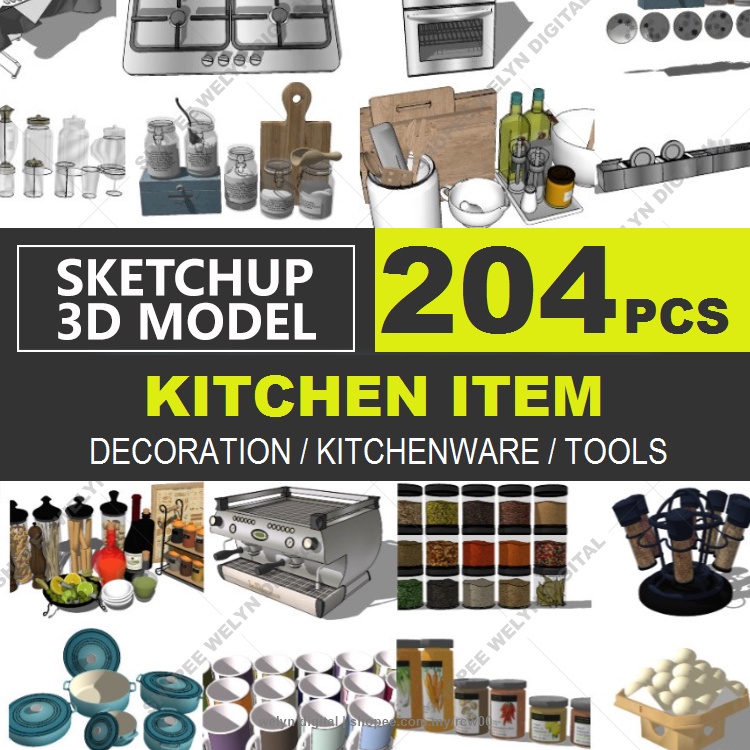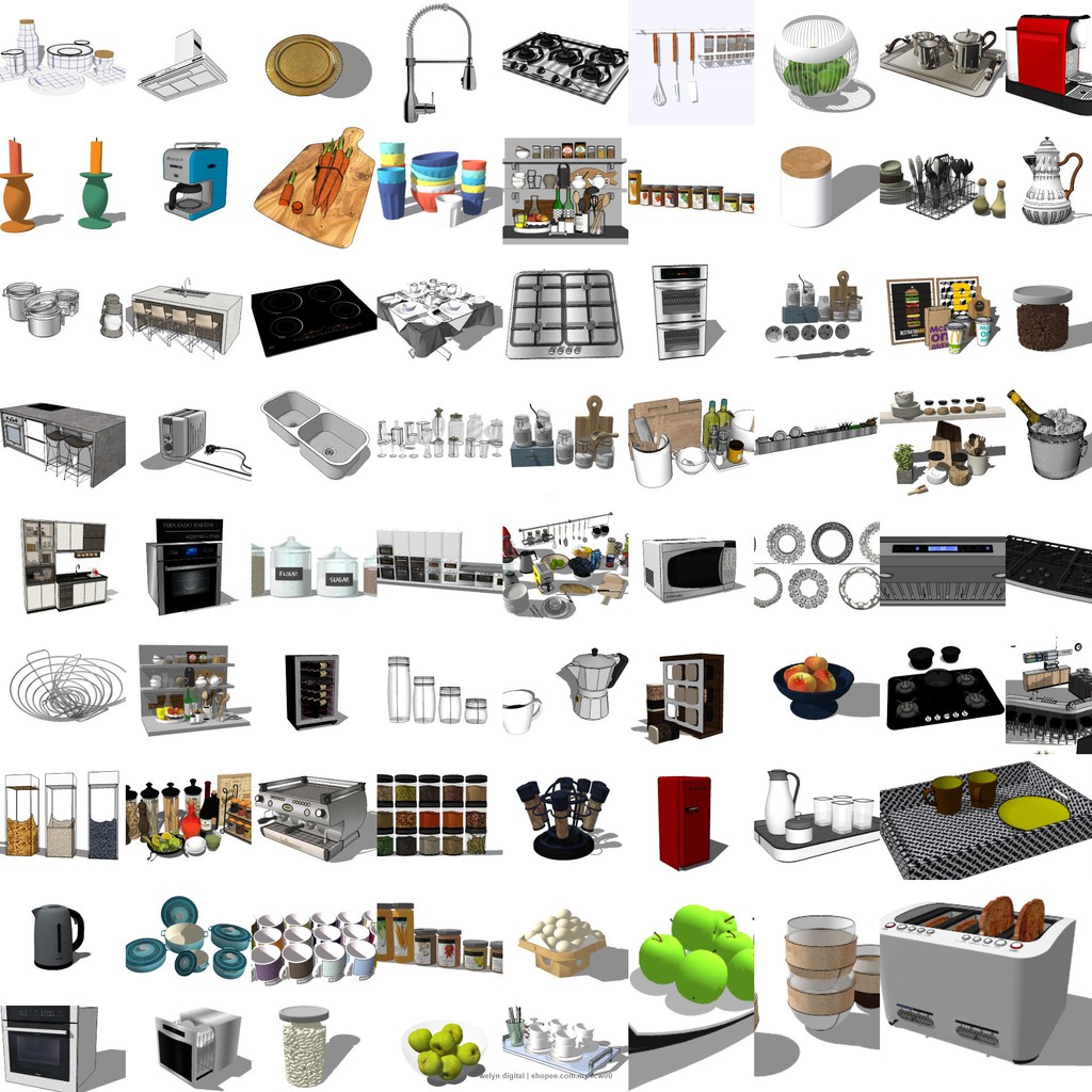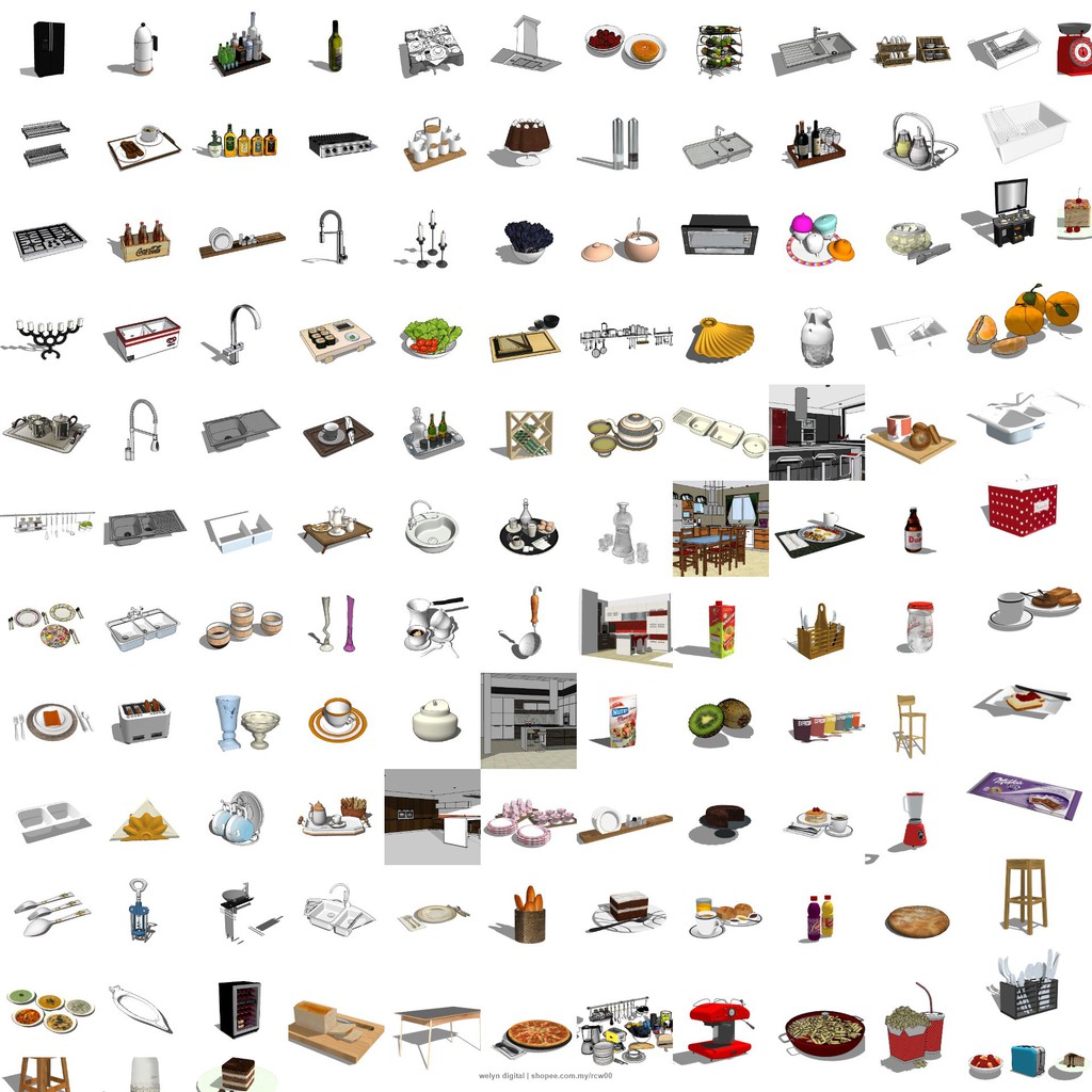 SketchUp | 3D Model Kitchen Item set 204 for home interior design | Exclusive Material Library