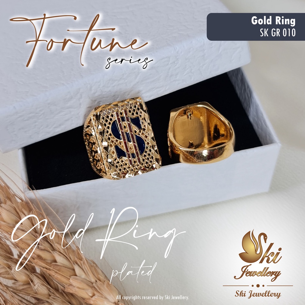 Ski Jewellery Fortune Korean Gold Ring Dollar with Abacus 1 PC Emas Korea Cincin Mas Sankrit dengan Sempoa