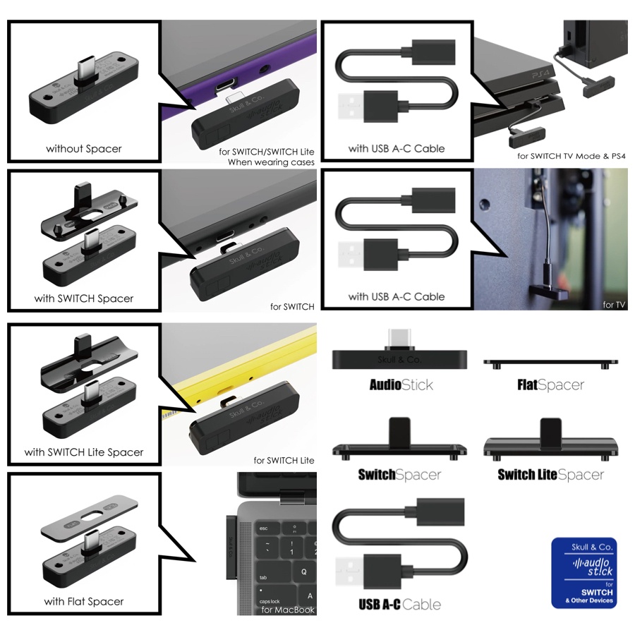 Skull & Co AudioStick Bluetooth 5.0 Audio Adapter for PS4/PS5/NINTENDO SWITCH/PC and Other Devices
