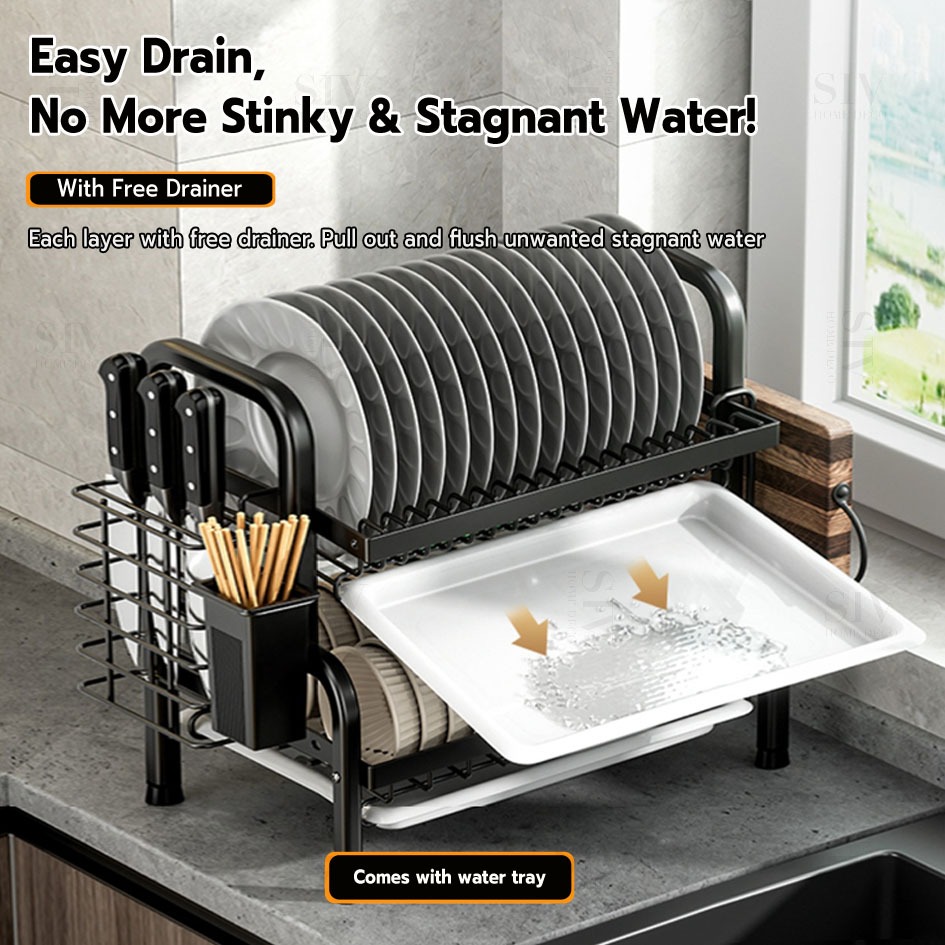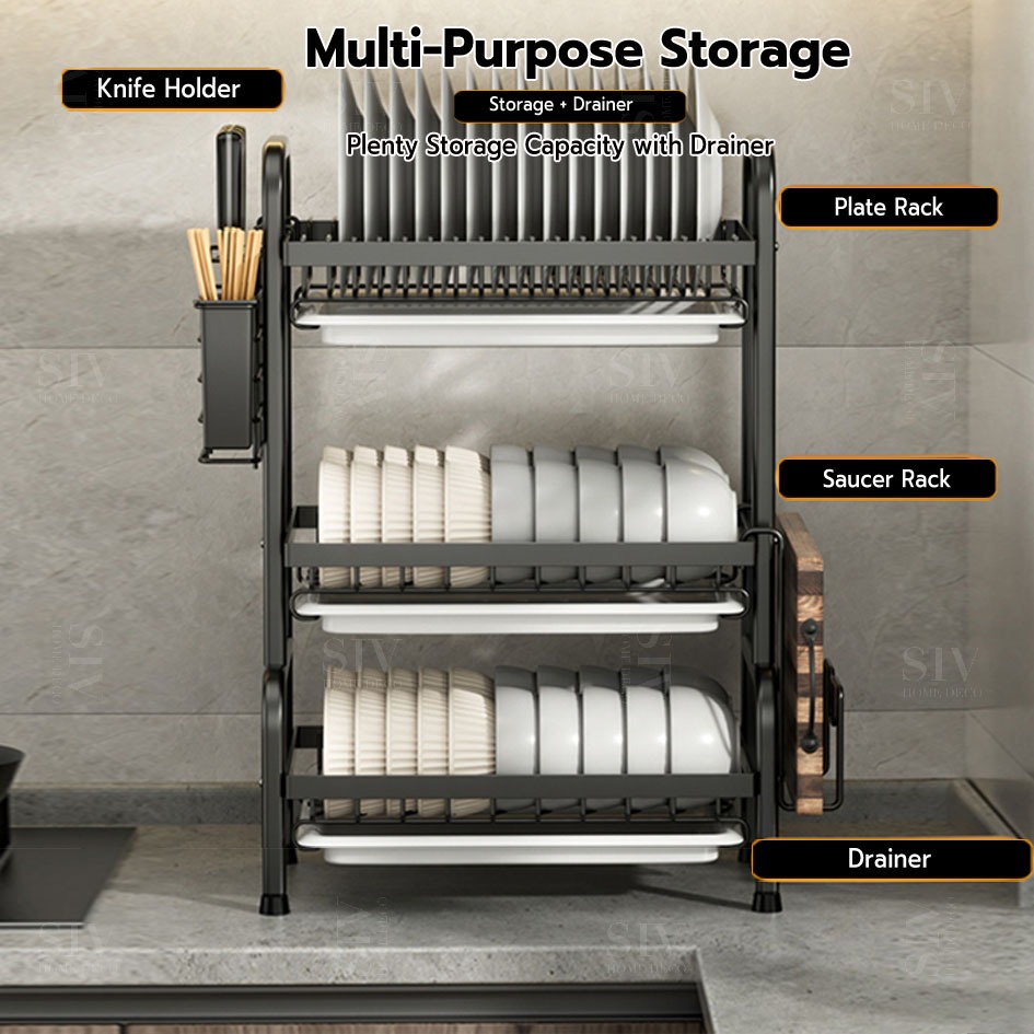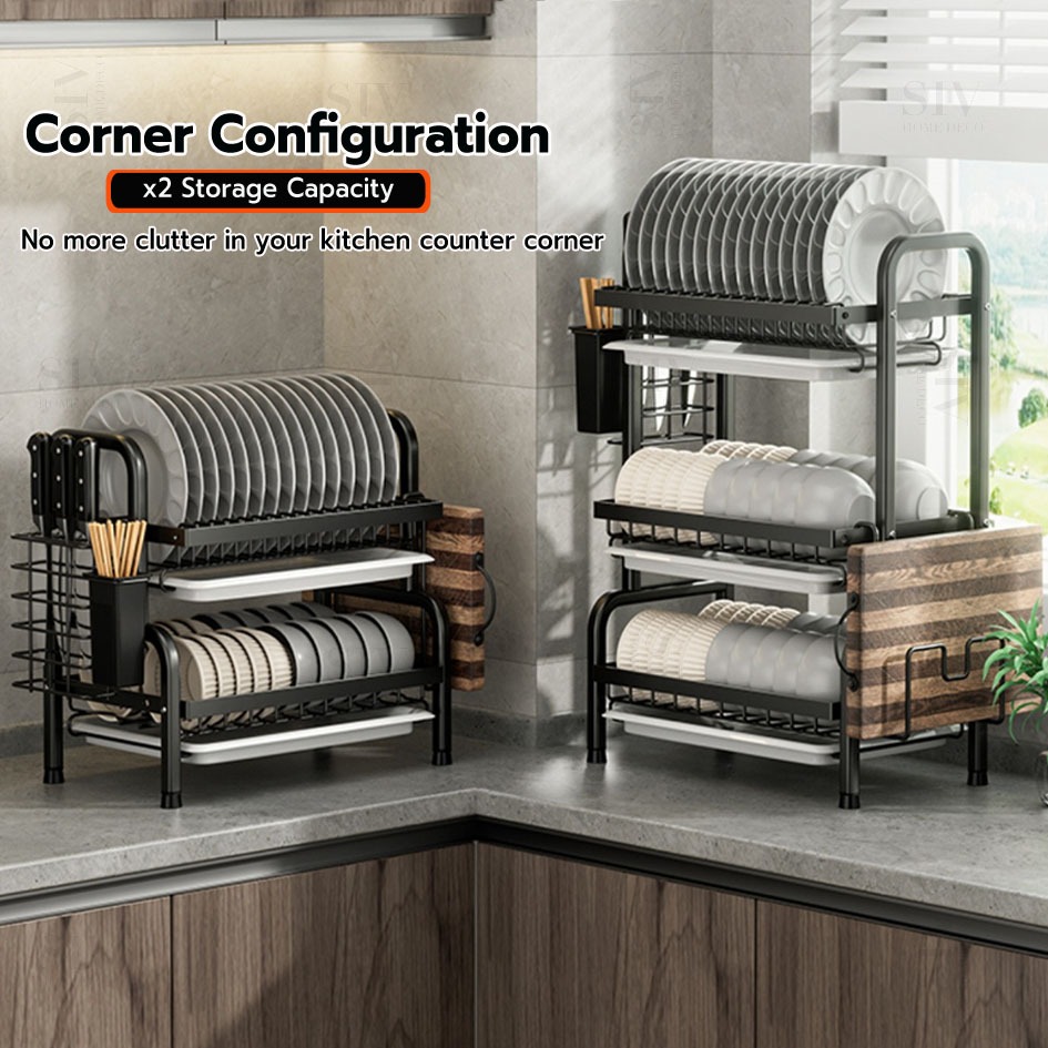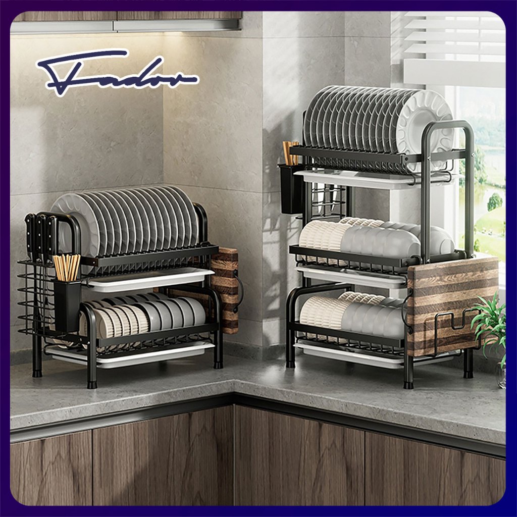 Fador Organizer 2/3 Tier Rak Pinggan Dish Rack Stainless Steel Dish Drainer Rak Dish Plate Drying Storage Rack Organizer