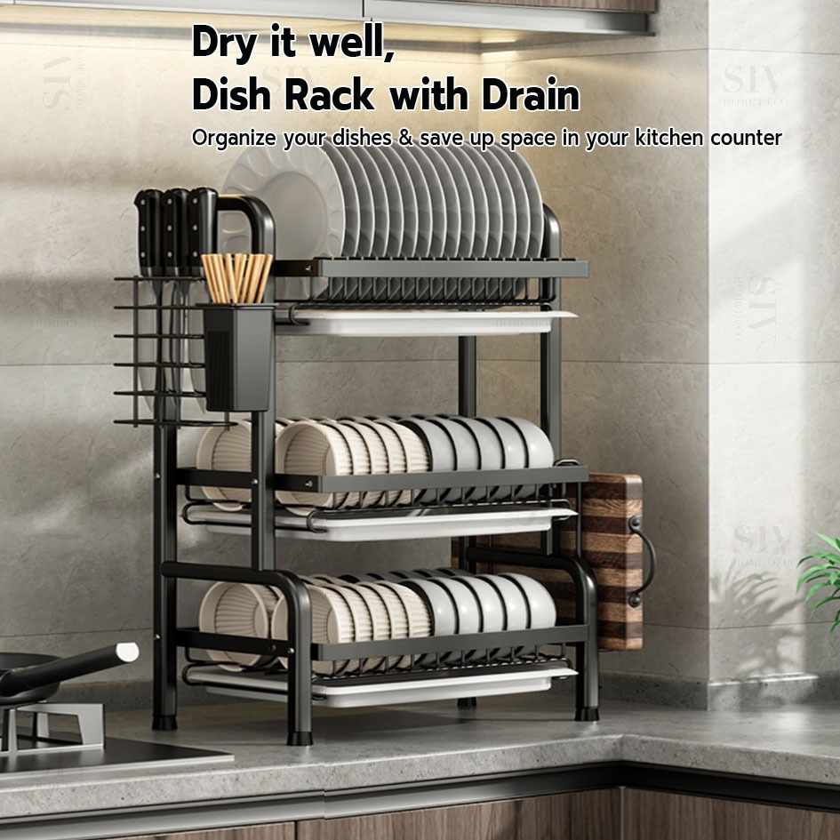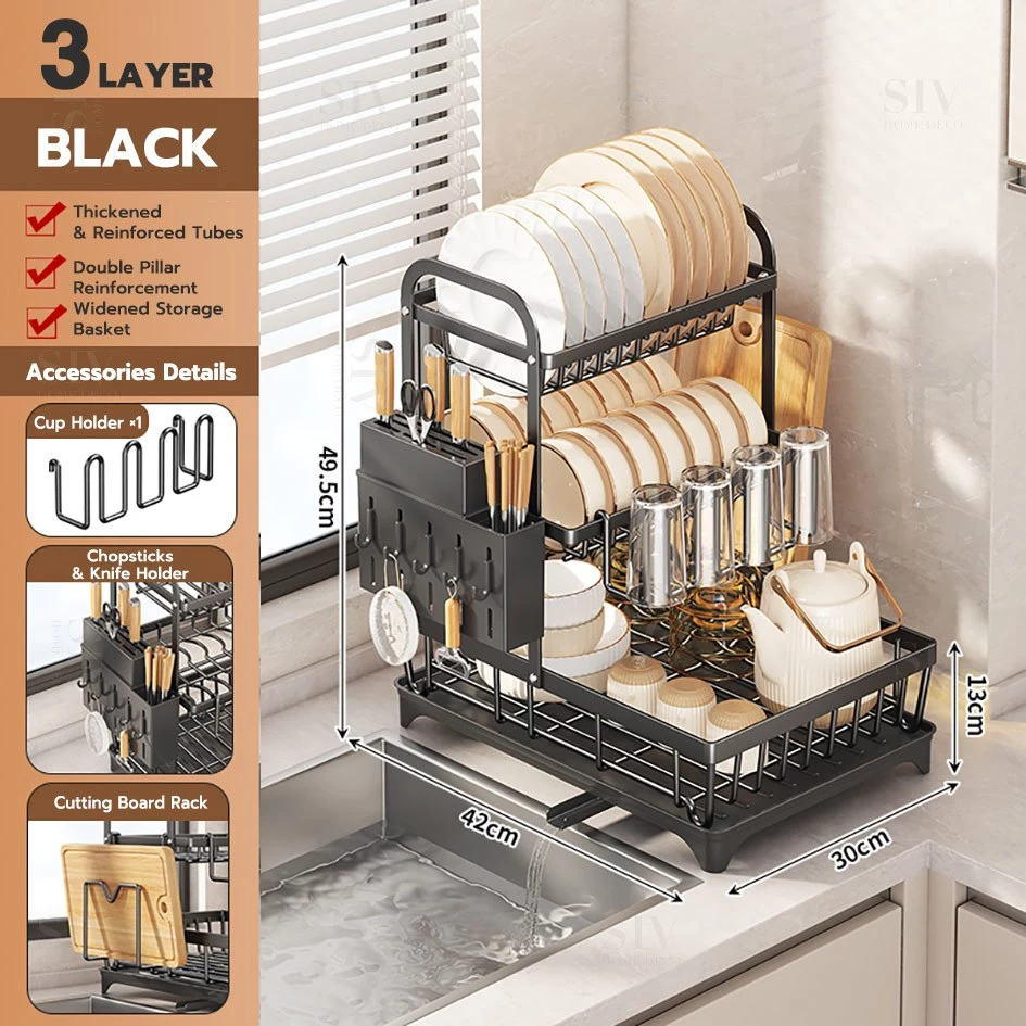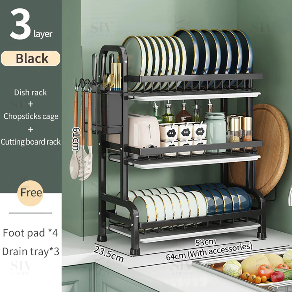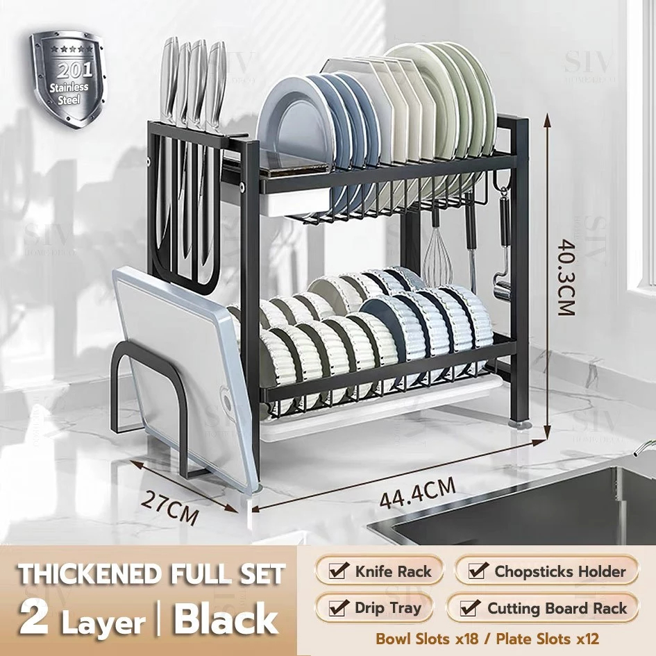 Fador Organizer 2/3 Tier Rak Pinggan Dish Rack Stainless Steel Dish Drainer Rak Dish Plate Drying Storage Rack Organizer