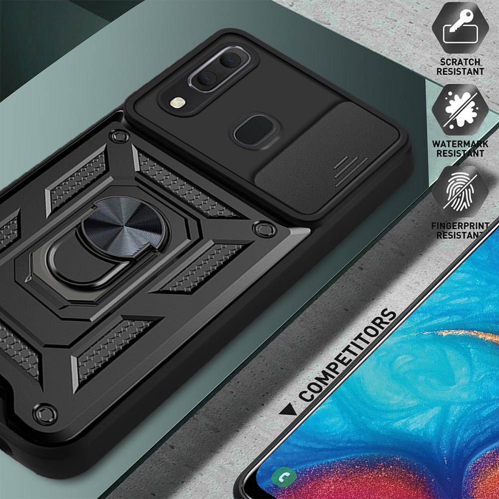 Slide Camera Lens Case For Samsung Galaxy A20 A30 A30S A10S A20S A11 A21S Shockproof Phone Case Armor Ring Casing Bracket Stent Push Camera Protection Case Hard Back Cover