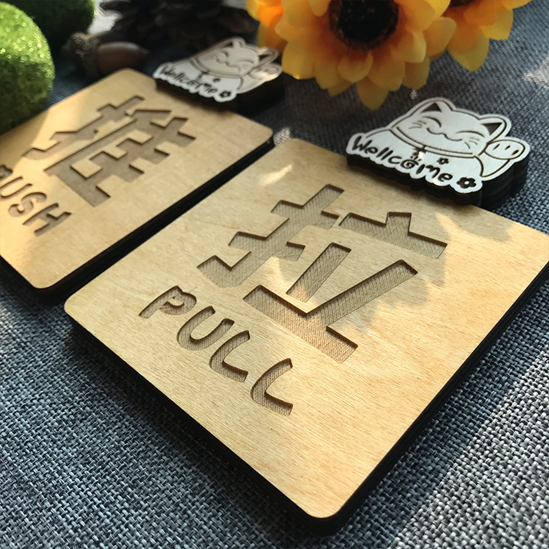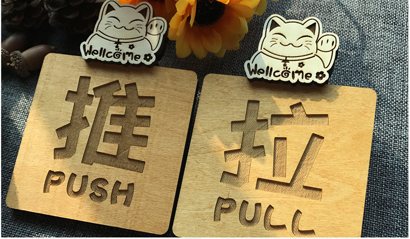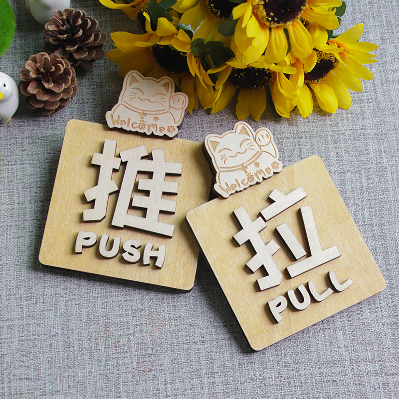 Sliding Signboard Door Sliding Sticker Notice Board Cartoon Solid Wood Sliding Sign Sliding Sticker Sign Push Pull Door