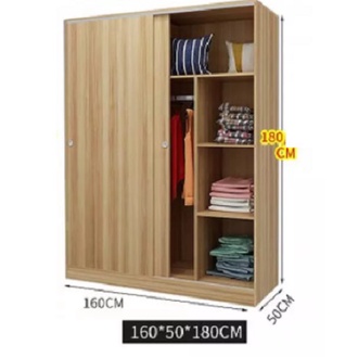Sliding Wardrobe Almari Baju Cabinet Kabinet Storage Closet Wooden Wood Board with Large Hanging Slide Bed Room Bedroom