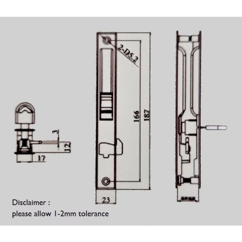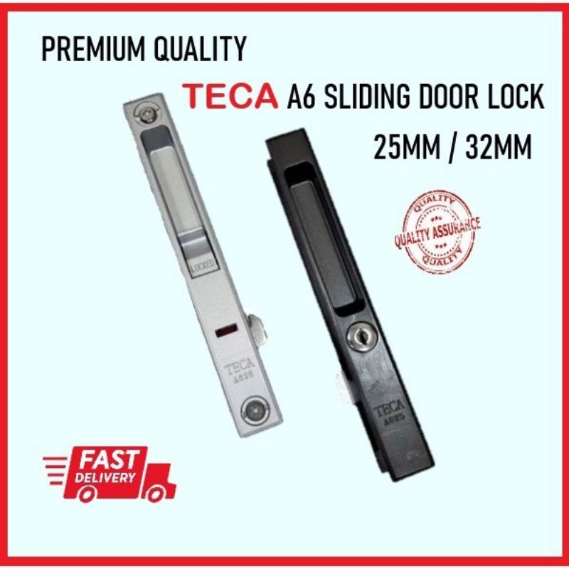 Sliding door lock A6 25mm/32mm/TECA/kunci gelongsor pintu aluminium kaca (Black / Silver / / White)