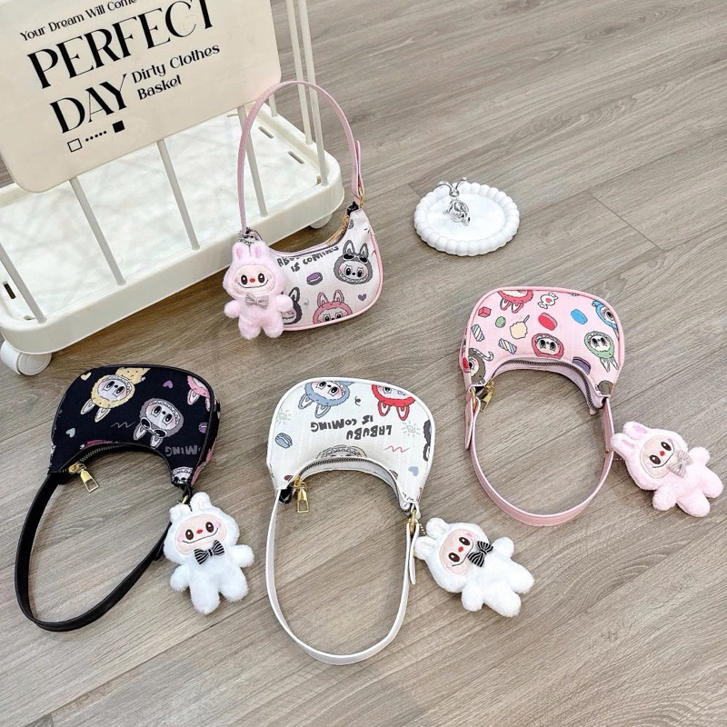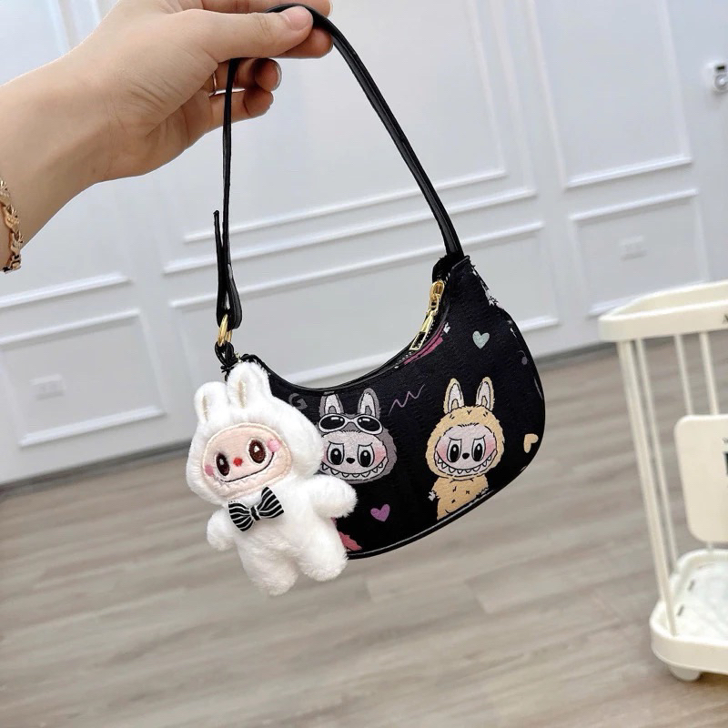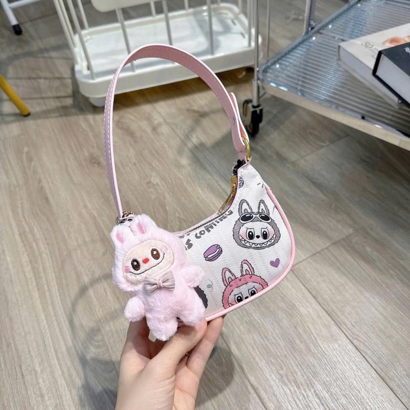 Labubu armpit bag, labubu handbag size 14 cm with cute teddy bear