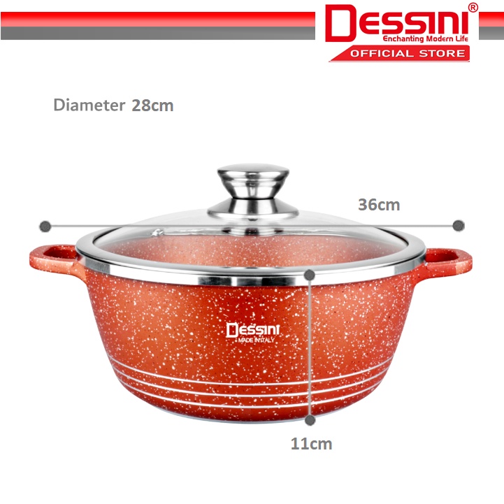 DESSINI ITALY Granite Die Cast Aluminium Non Stick Casserole Pot Bowl Deep Fry Pan Cookware Tool (28cm)