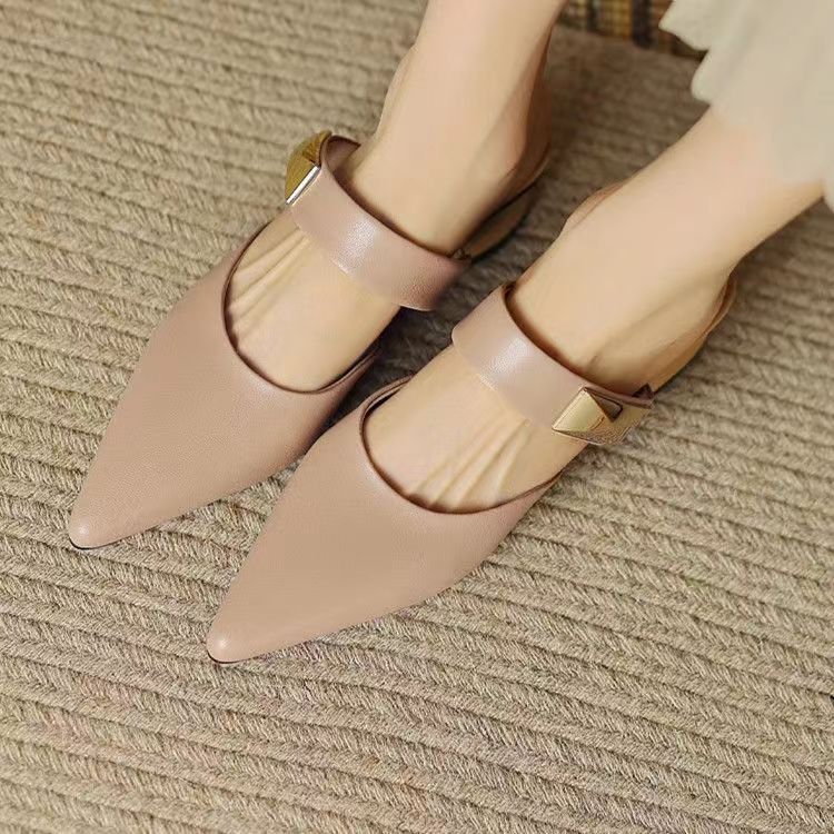 Slippers women's 2024 summer new style external wear fashion cool slippers thick heels versatile middle heel Baotou half set pointed high heels