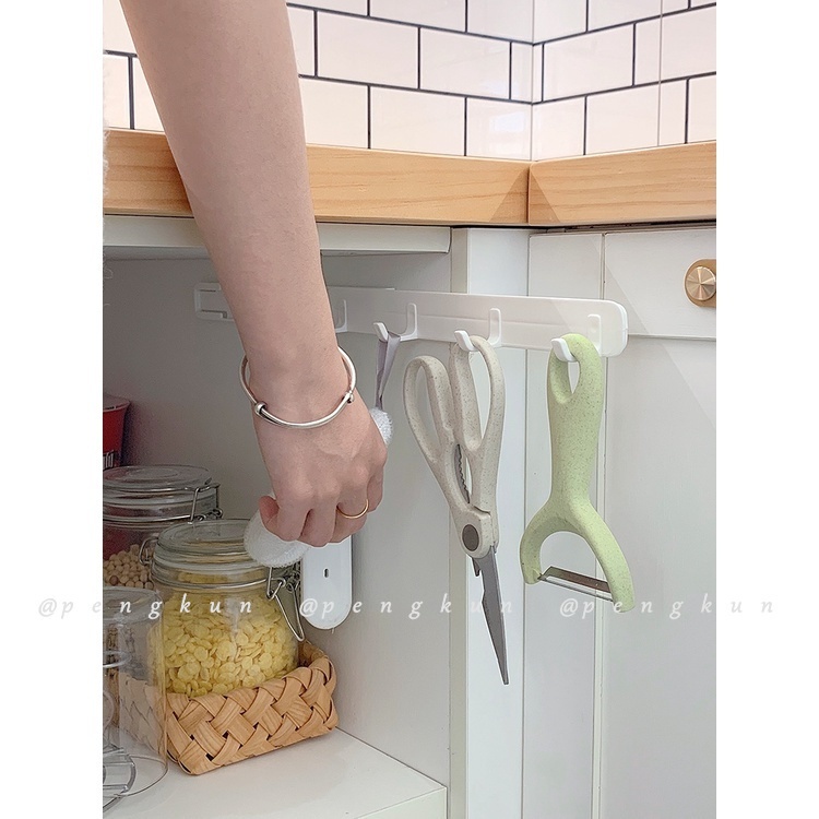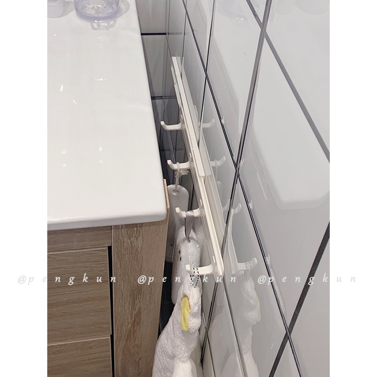 Slot Hook Retractable Perforation-Free Wall Hanging Kitchen Shelf Cabinet Pull-Out Bathroom Four-Row Sticky Dormitory Pull Hanger