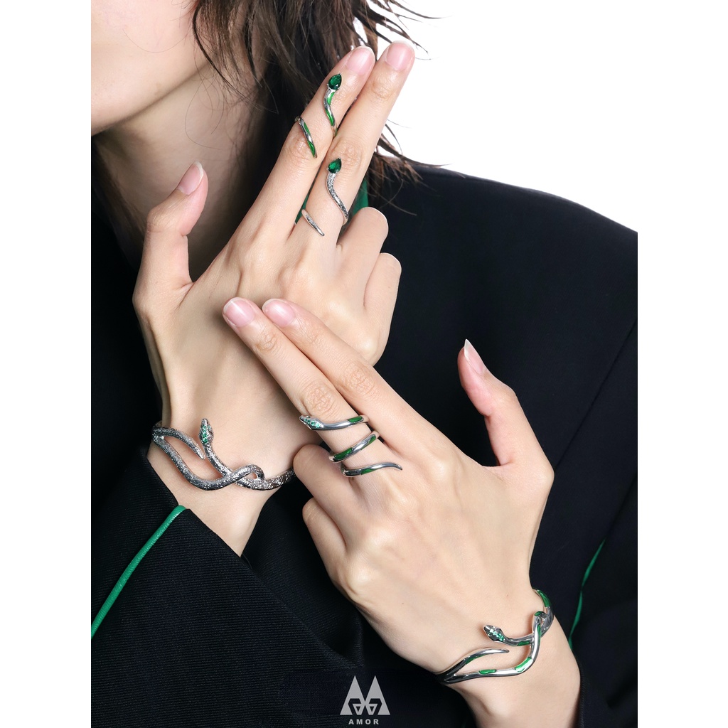 Slytherin green snake joint ring tail ring girl snake yard unisex pet on fingertips original