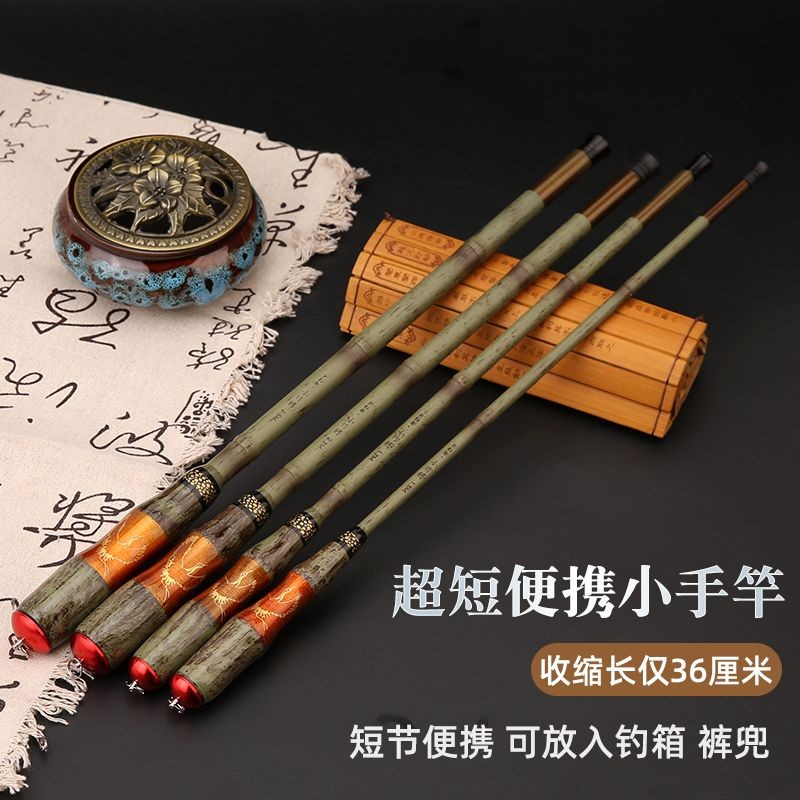 Small Bamboo General Pure Carbon Ultra-Short Section Mini Portable 37-Adjustment Small Object Pole Small Bamboo Pole Small Fishing Pole Children's Pole