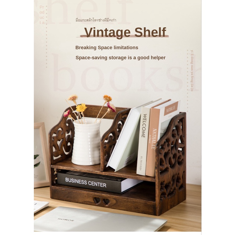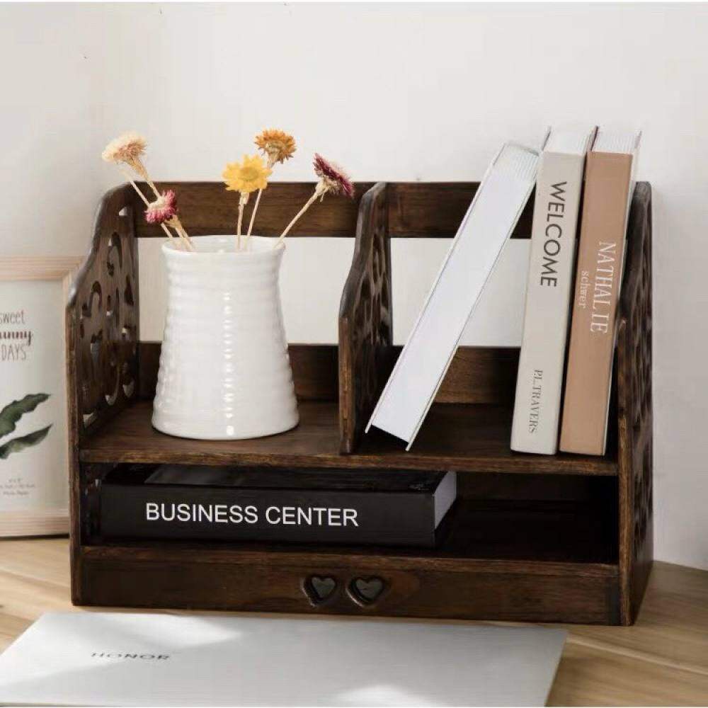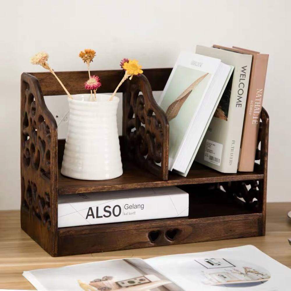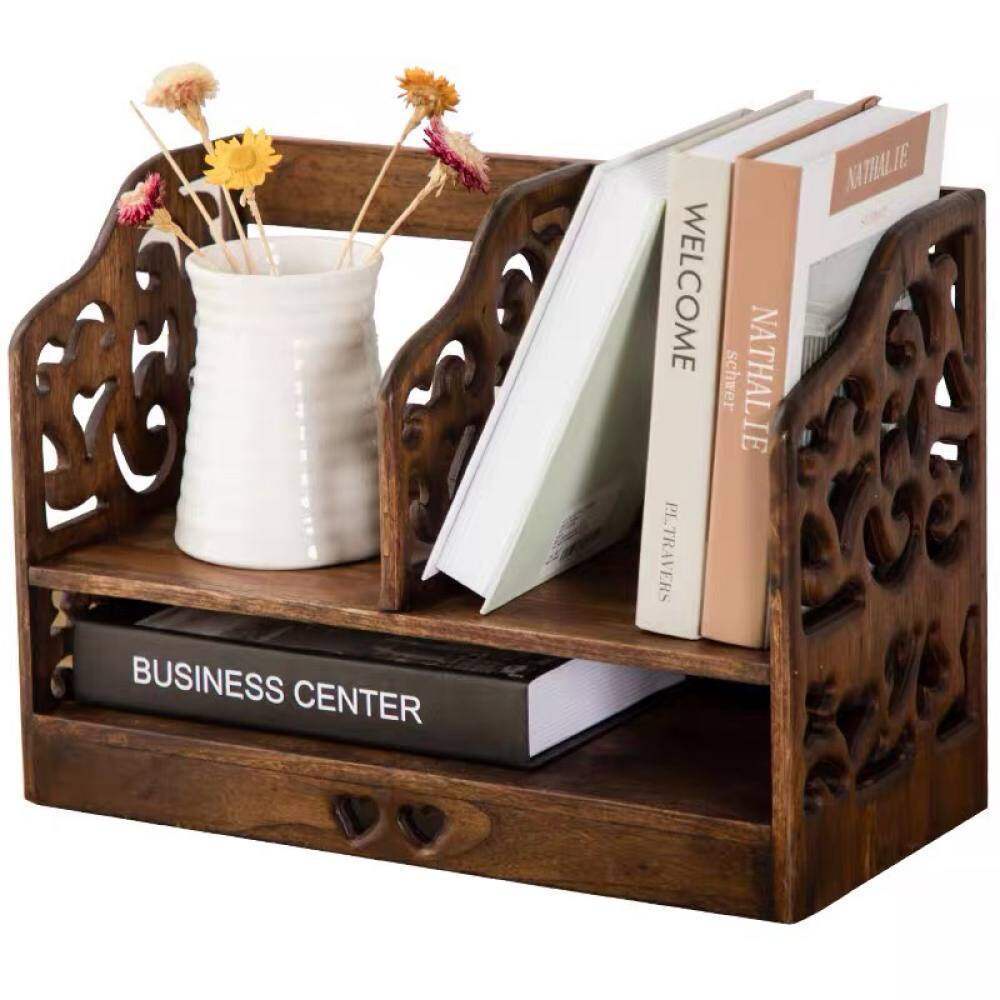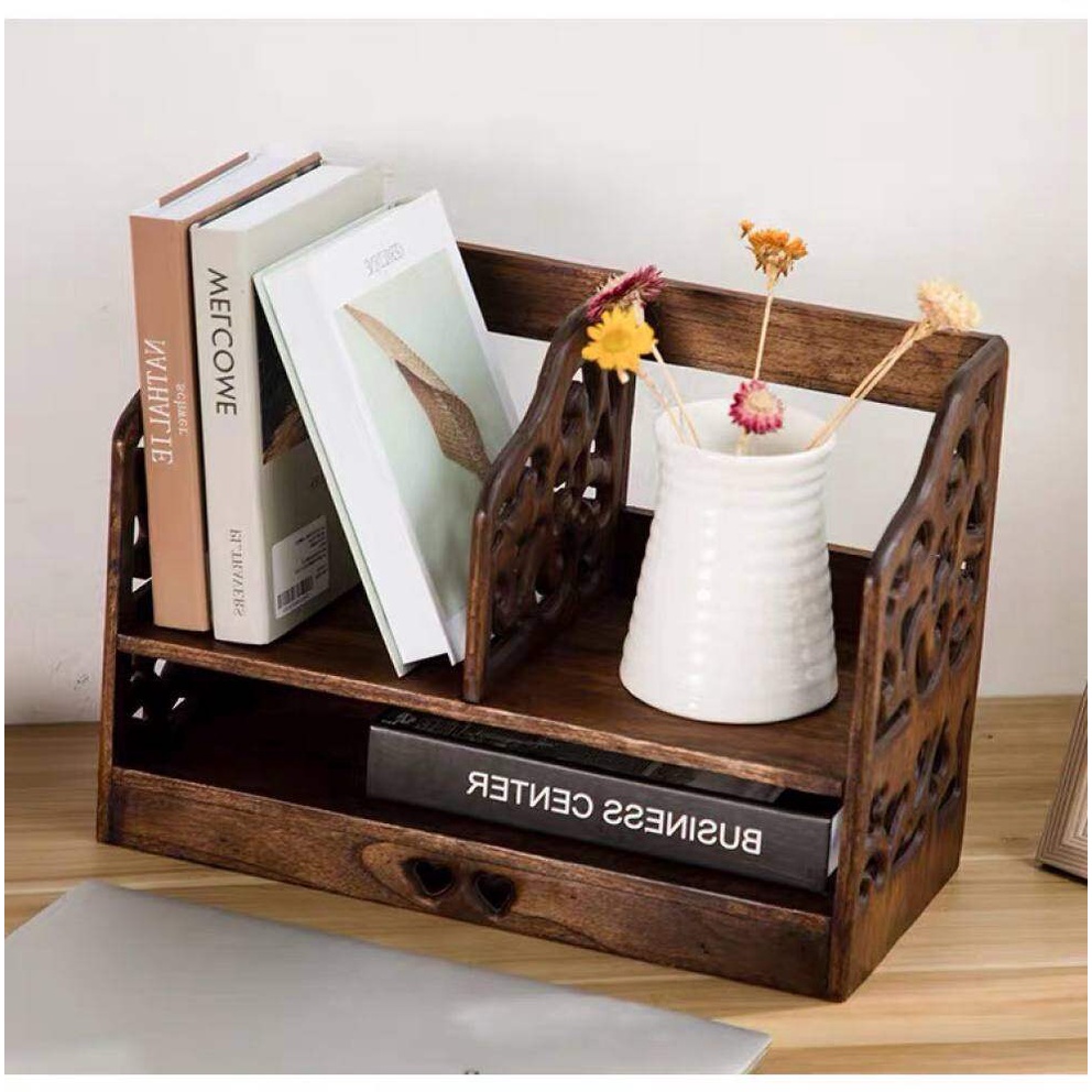 Small Bookshelf for Desktop Storage, Mini Cute Desk Shelf Solid Wood Multifunctional Storage Rack