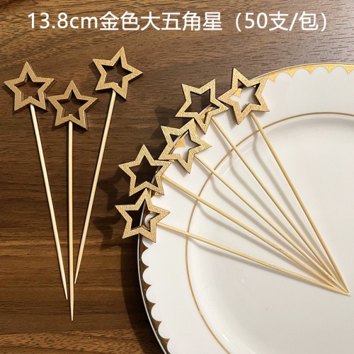 Small Burger Stick Candied Gourd Christmas Five-pointed Star Bamboo Stick Disposable Fruit Stick Sandwich Toothpick Flag 10cm Fork