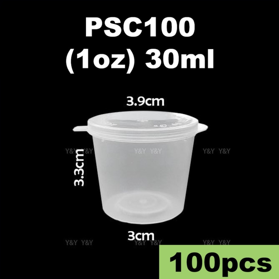 Small Plastic Sauce Cups Food Storage Containers Clear Boxes + Lids [PSC100 - 30ml & PSC50 - 50ml]