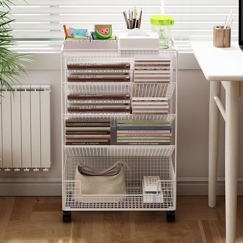 Small bookshelf removable wheeled book storage rack wrought iron desk simple floor-to-ceiling bookcase