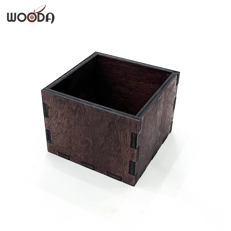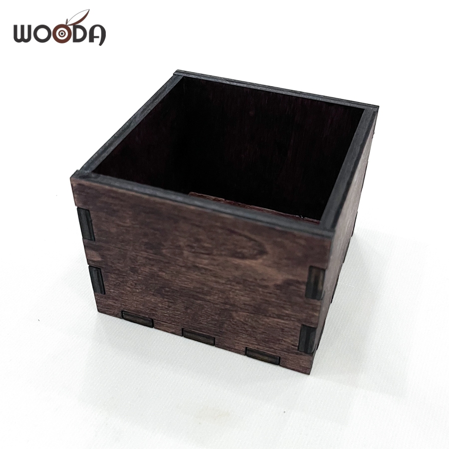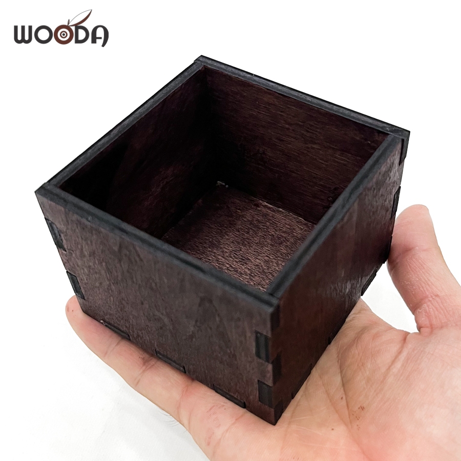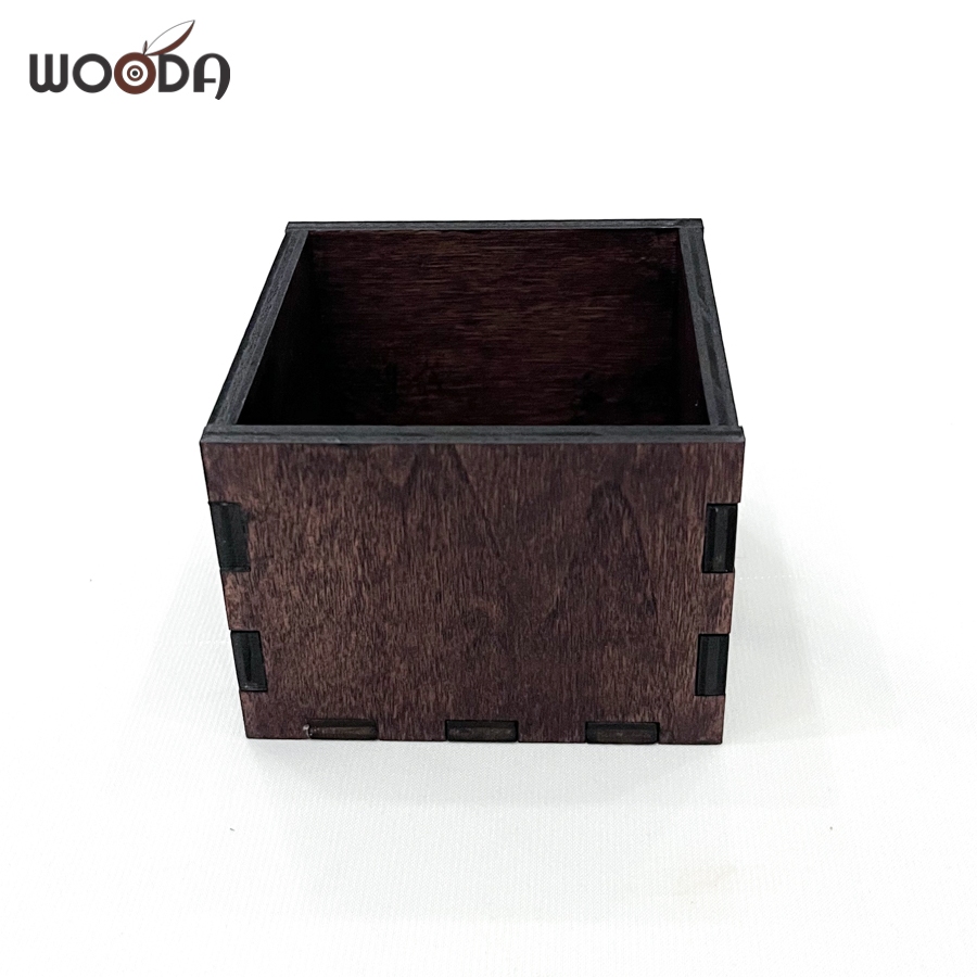 Small multi-purpose walnut wooden box, lidless wooden box made of high quality vintage brown plywood 8x8x6cm