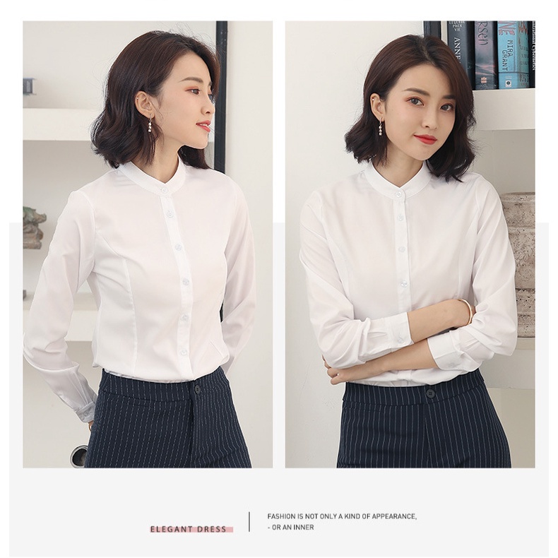 Small stand collar white shirt women's long sleeve formal professional 2021 spring and autumn new bottomed shirt work clothes
