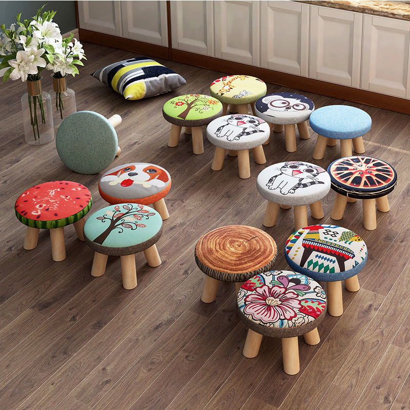 Small stool household solid wood round stool cute children sofa stool baby chair fashion cartoon creative small bench