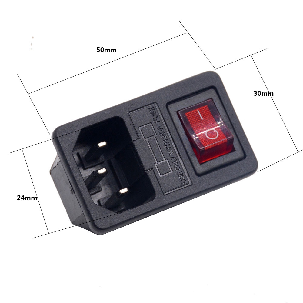 Small tool 3 pin IEC 320 C14 inlet module plug fuse switch male power socket 10A 250V