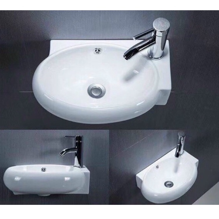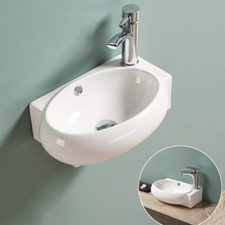 Small washbasin, mini sink 42x28 cm, suitable for small bathroom space wall mounted on left or right corner