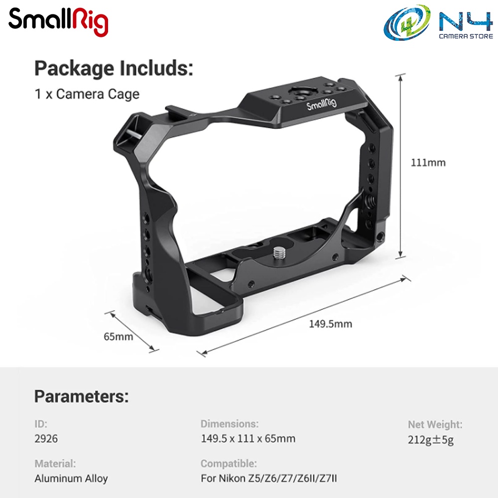 SmallRig 2926B Full Camera Cage for Nikon Z5/Z6/Z7/Z6II/Z7II Camera With Cold Shoe NATO Rai DSRL Camera Cage Small Rig