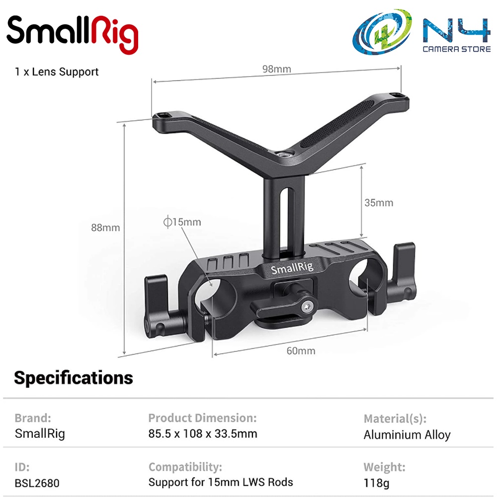 SmallRig BSL2680 For DSLR Camera Y-Shaped Bracket Lens 15mm LWS Universal Lens Support With Rod Clamp Supporting Rig