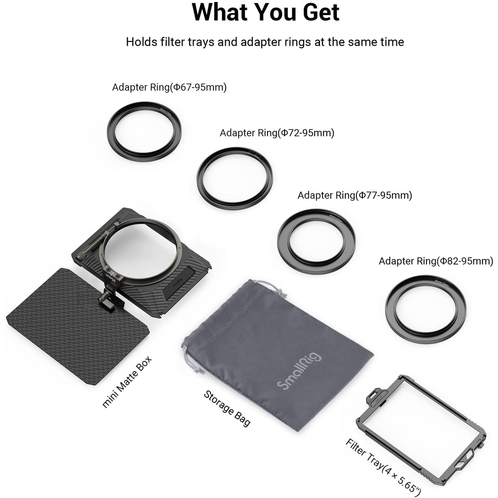 SmallRig Mini Matte Box Lite with Top Flag for DSLRs and Mirrorless Cameras, Compatible with 67mm/72mm/77mm/82mm/95mm Lenses, Comes with Filter Tray - 3575