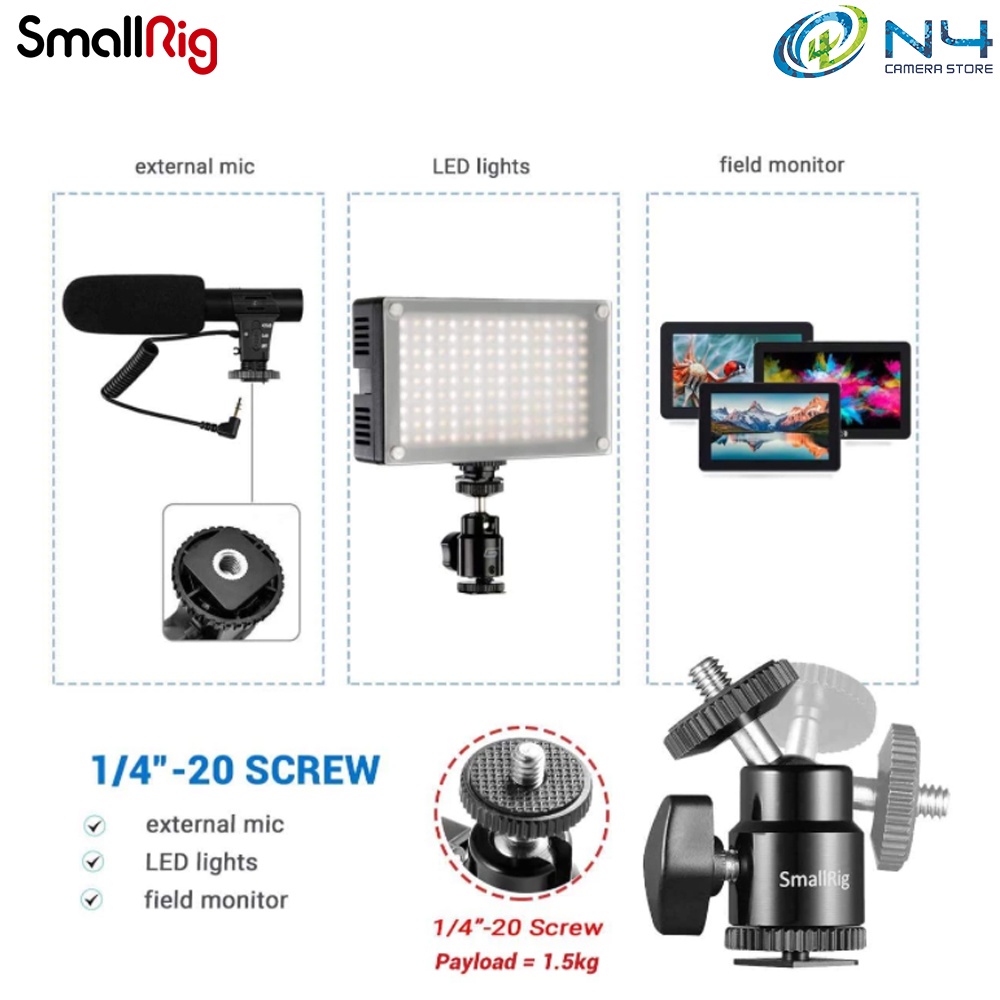 SmallRig Quick Release Clamp Mount with 1/4" Screw Ball Head Mount Hot Shoe Adapter For Dslr Camera Cage/Light/Hook 1124