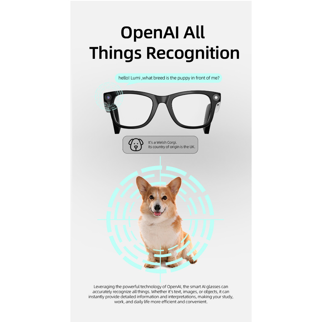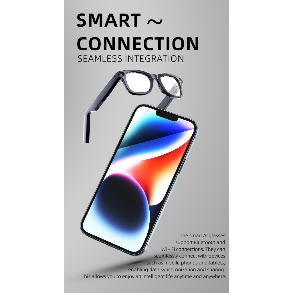 Smart AI Glasses 5MP HD Camera WiFi/Bluetooth ChatGPT AI Voice Translation AI-Powered Vision Smart Assistant Glasses