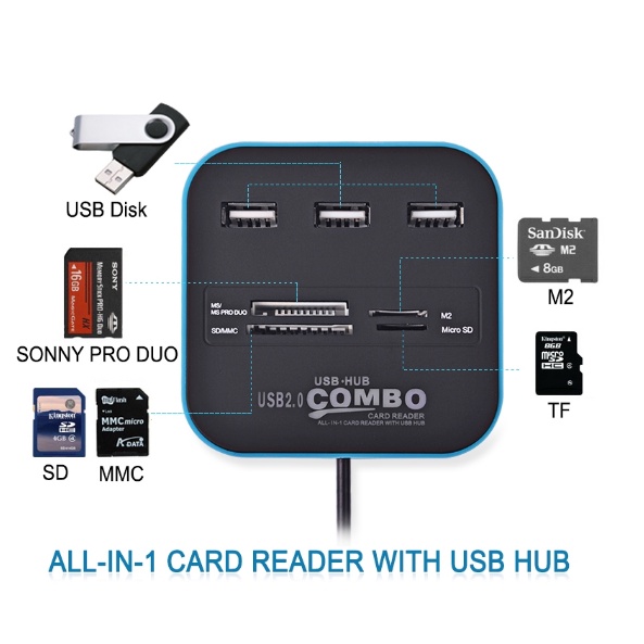 Smart All in One Combo Card Reader & 3 Ports USB Hub Combo 2.0 Micro TF SD MMC Card Reader