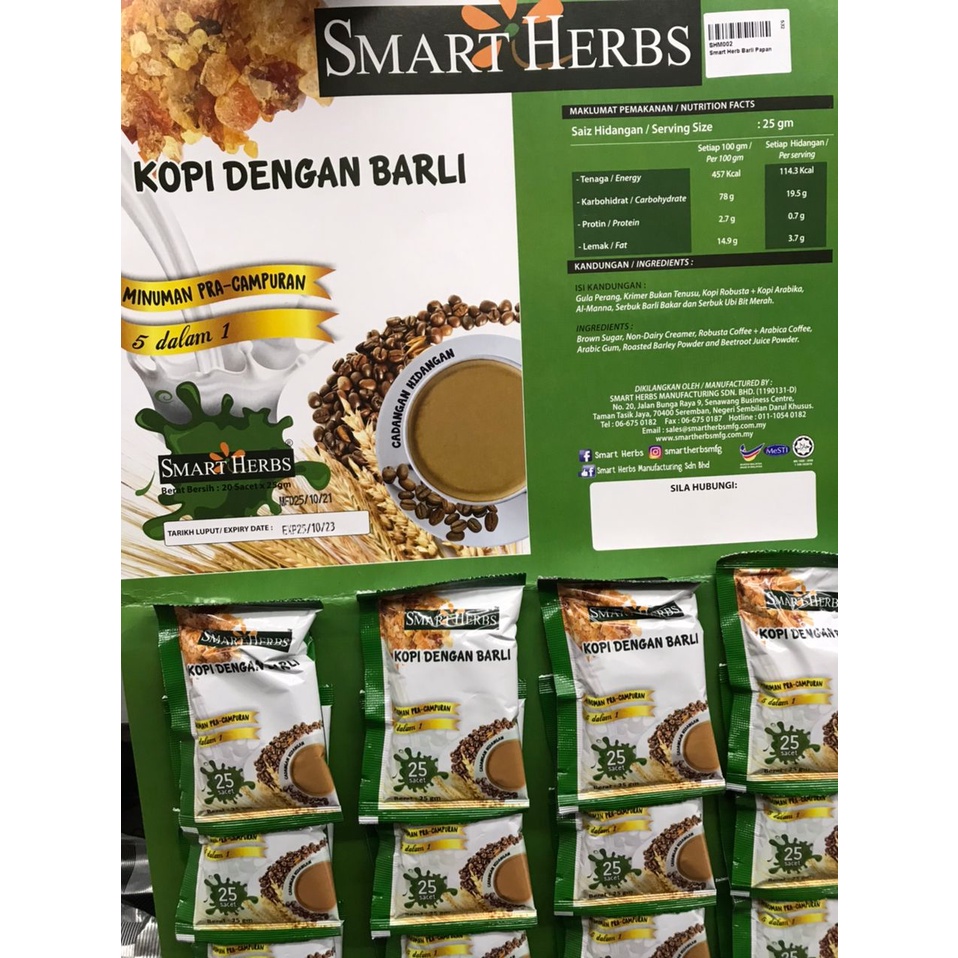 Smart Herbs - Kopi Pra Campuran Dengan Barli Papan 25g X 20s
