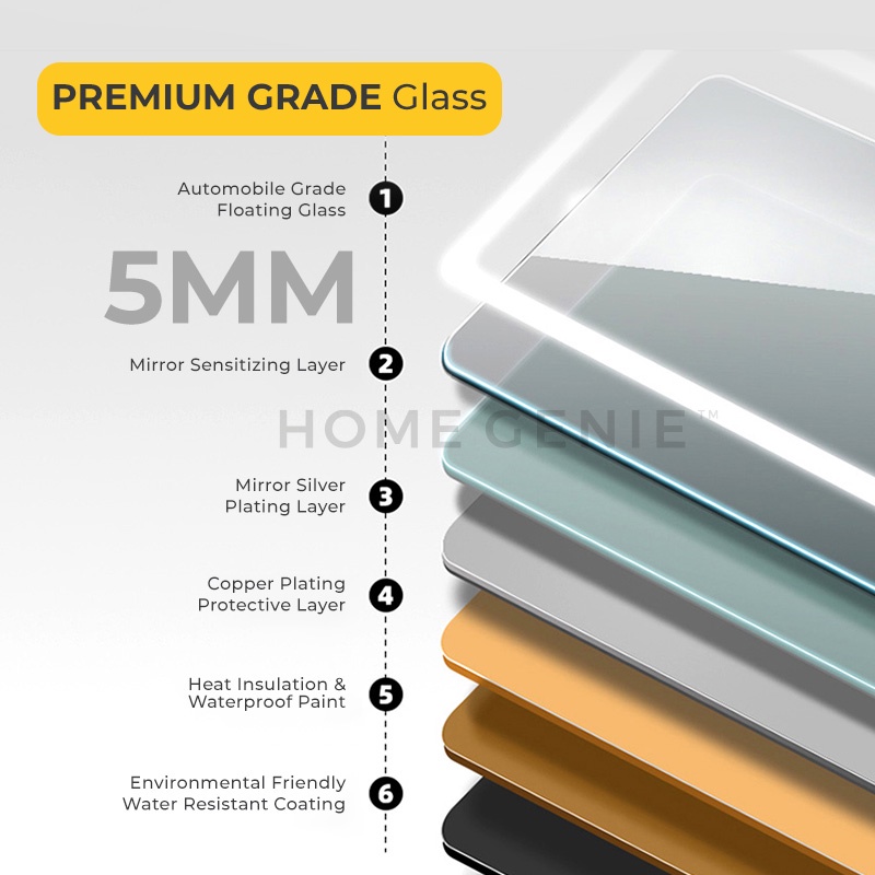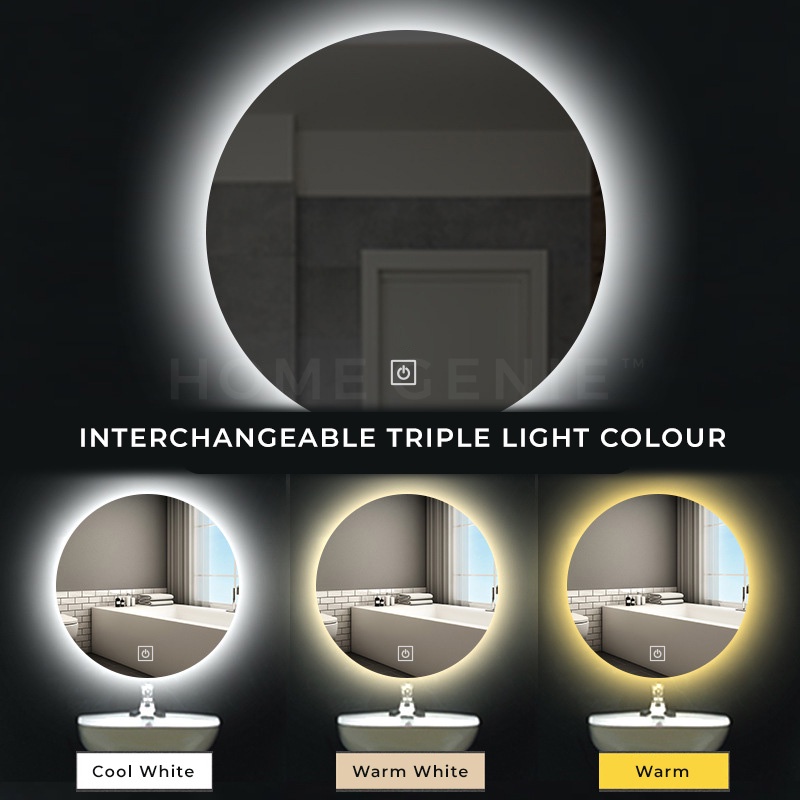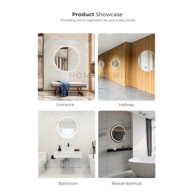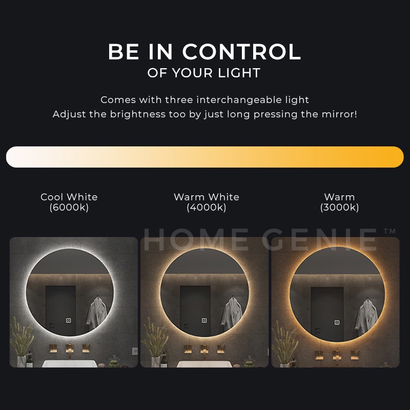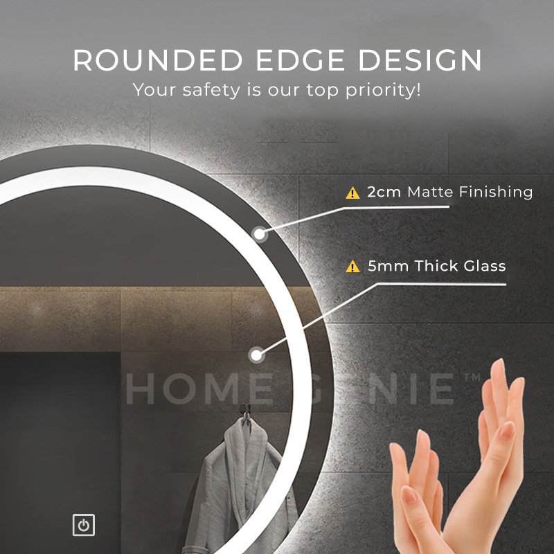 Smart LED Light Mirror Wall Mirror Vanity Makeup Bathroom Lampu Cermin Solek IKEA Mirror Bilik Mandi by Home Genie