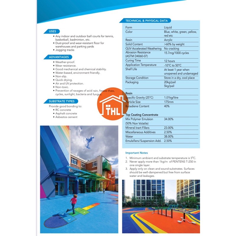 Smart / Pentens T250 Sport Court Water Based Coating Cement Flooring 5kg