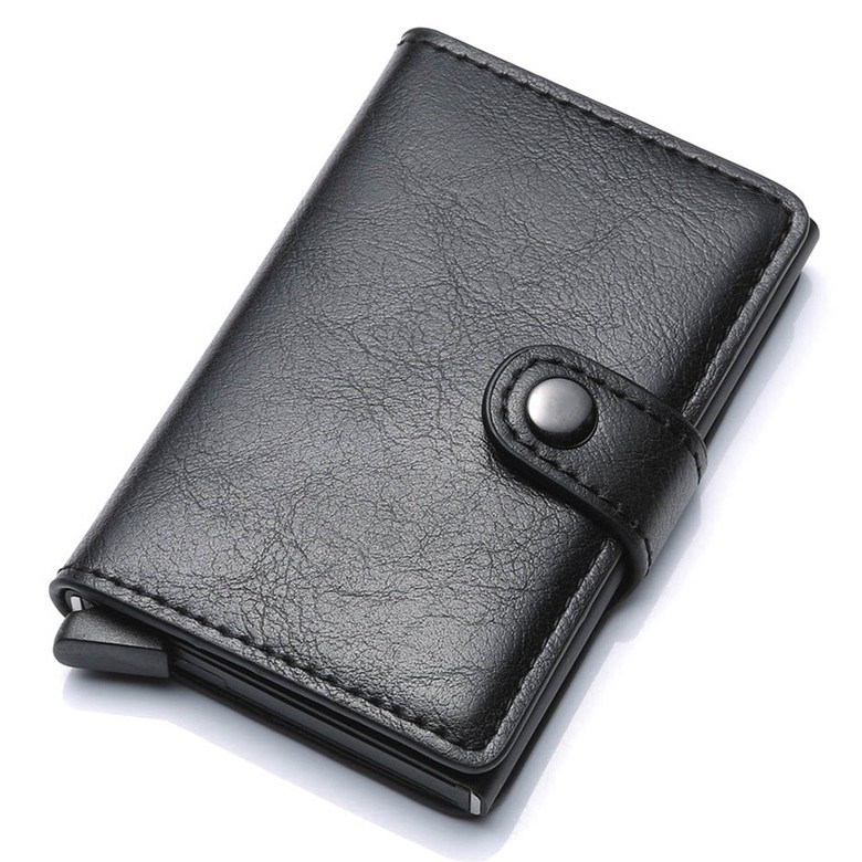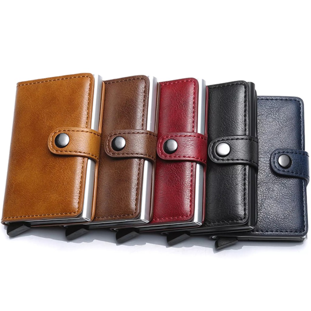 Smart RFID Blocking Wallet Anti-theft Aluminum Alloy Vintage Multi-Card Holder Leather Wallets Auto Pop-up Purse Dompet