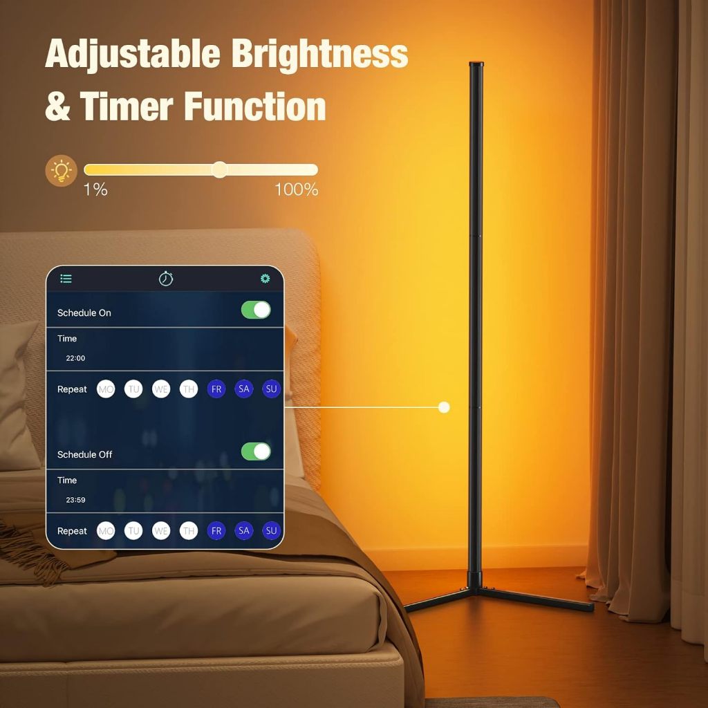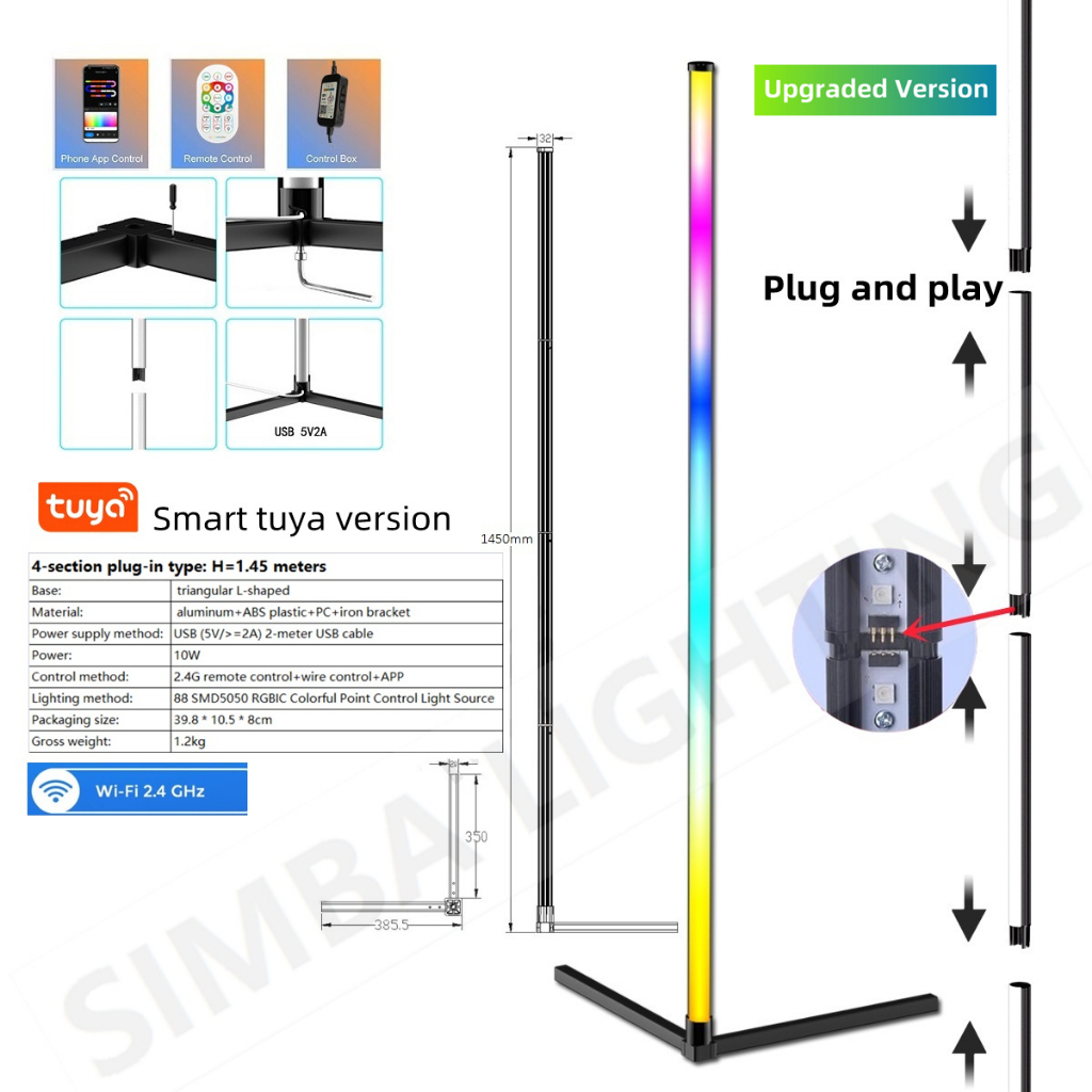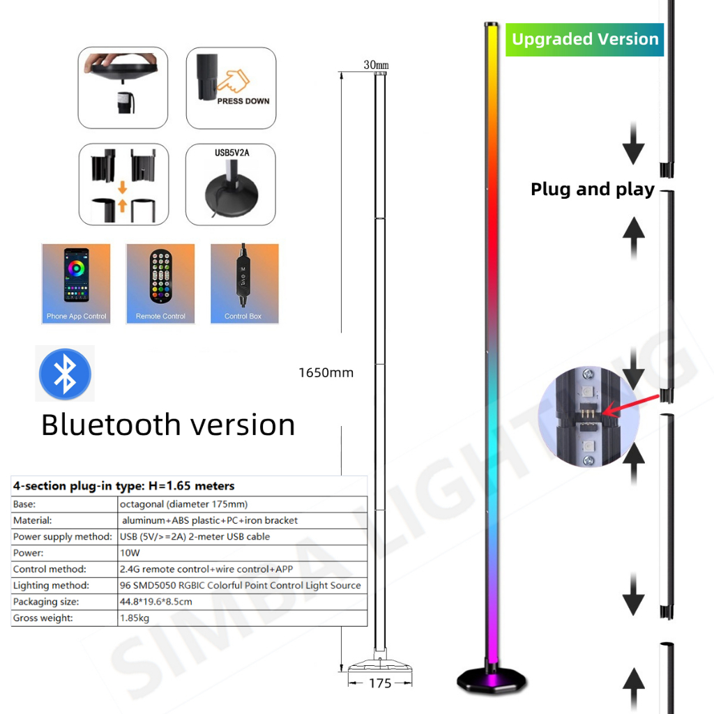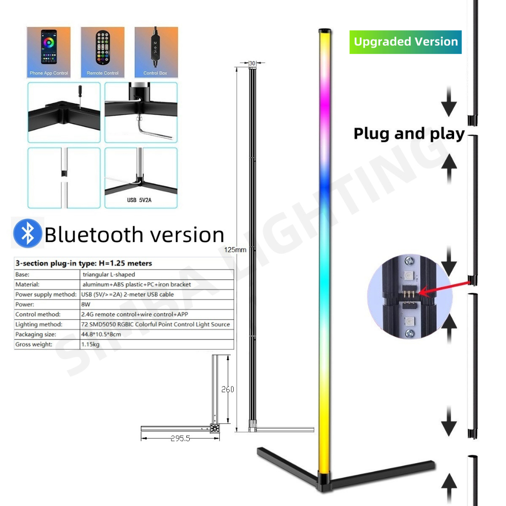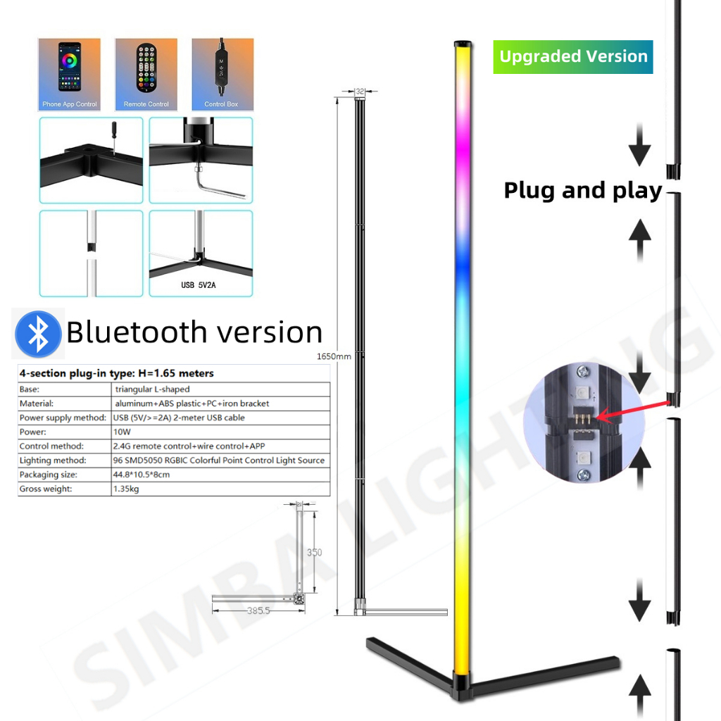 Smart RGB LED Corner Floor Lamp 180CM 5V USB Bluetooth app Gaming Light bar Music sync Color Changing Ambient Mood Lighting for Bedroom Living Room HouseModern Minimalist LED Stand Lighting Lampu raya
