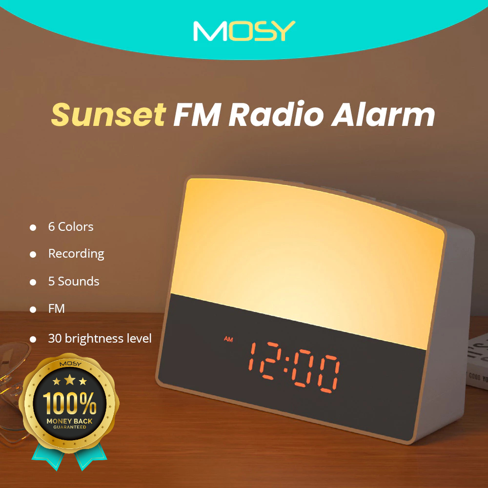 Smart Sunrise Lamp with 6 Colors 5 Sounds Wake-Up Light LED Digital Touch Alarm Clock Snooze Radio