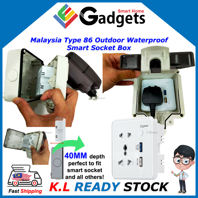 Smart Switch Socket Plug Outdoor IP66 Waterproof Protection Box for Malaysia Type 86 Power Strip Cord Extension Lock