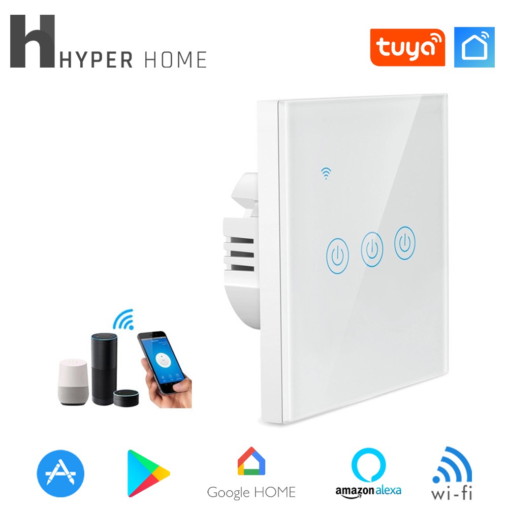 Smart Switch Wifi Tuya Smart Life App, Voice & Touch Control 2 Gang 3 Gang Wall Switch