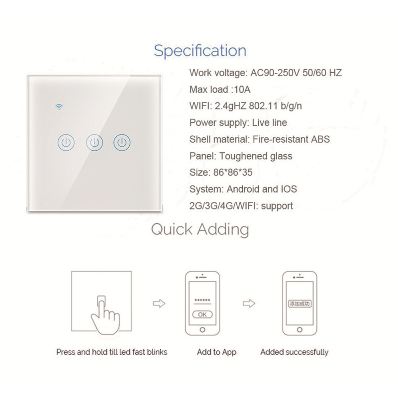 Smart WIFI Wall Switch Compatible with Google Home Amazon Alexa Tmall