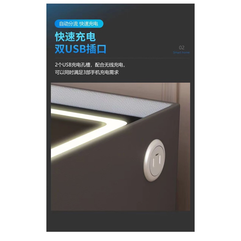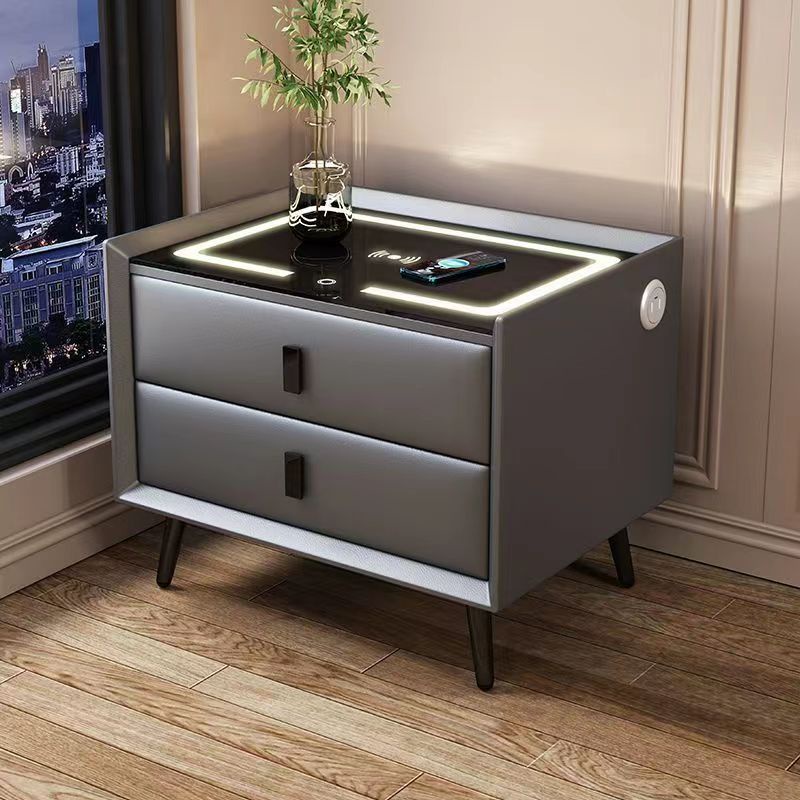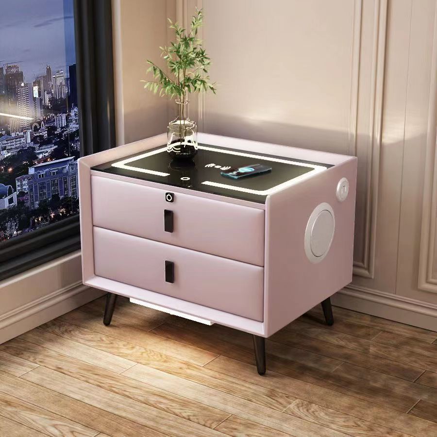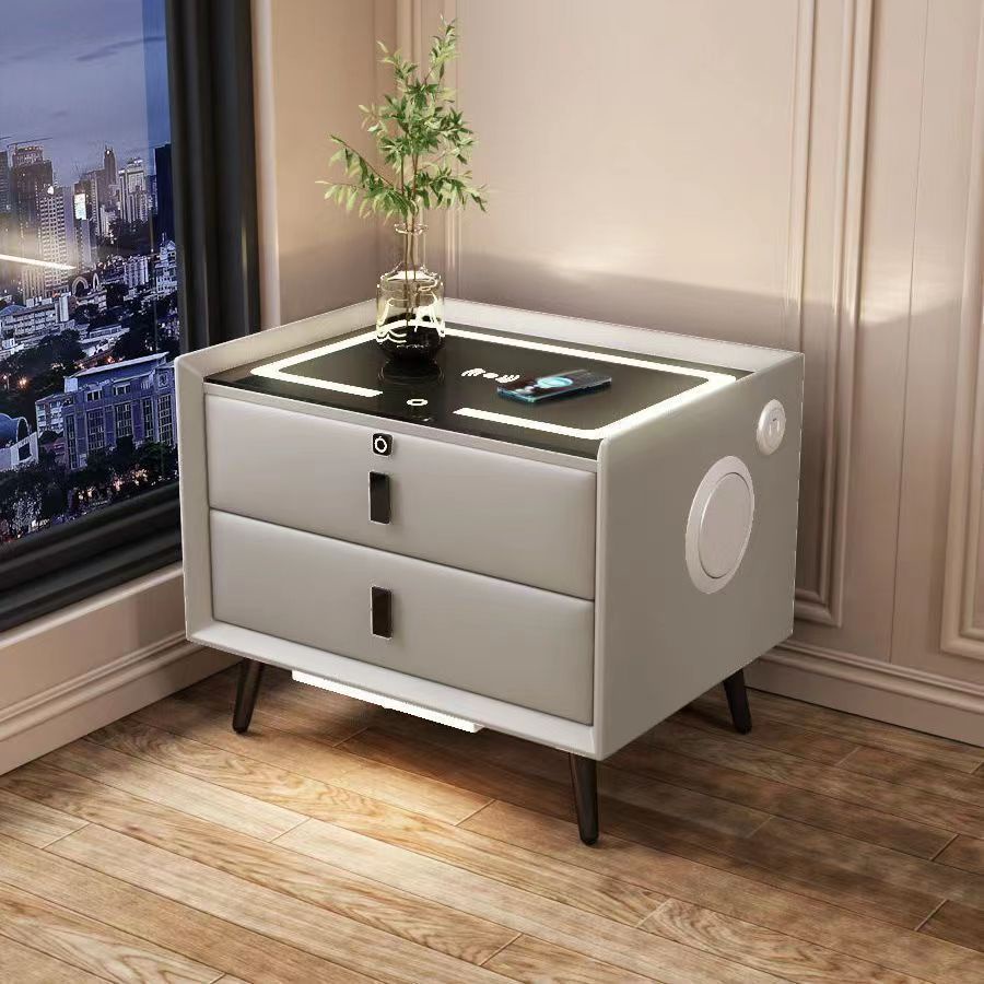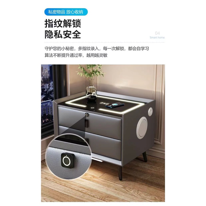 Smart bedside table mobile phone charging bluetooth audio modern light luxury solid wood storage bedroom storage